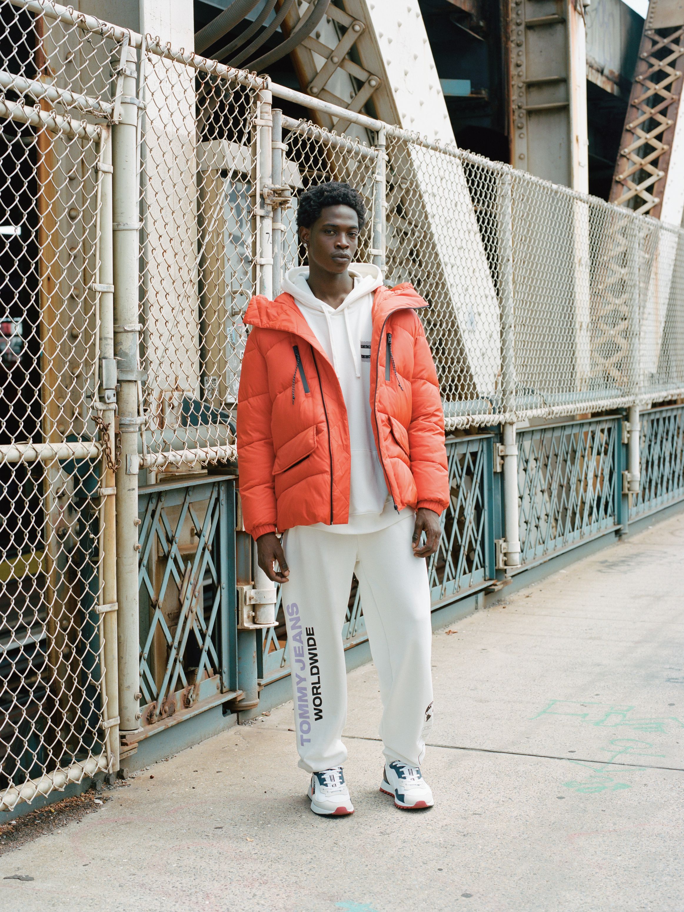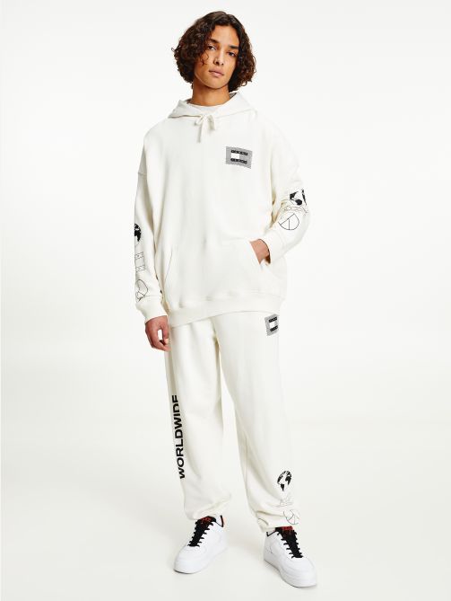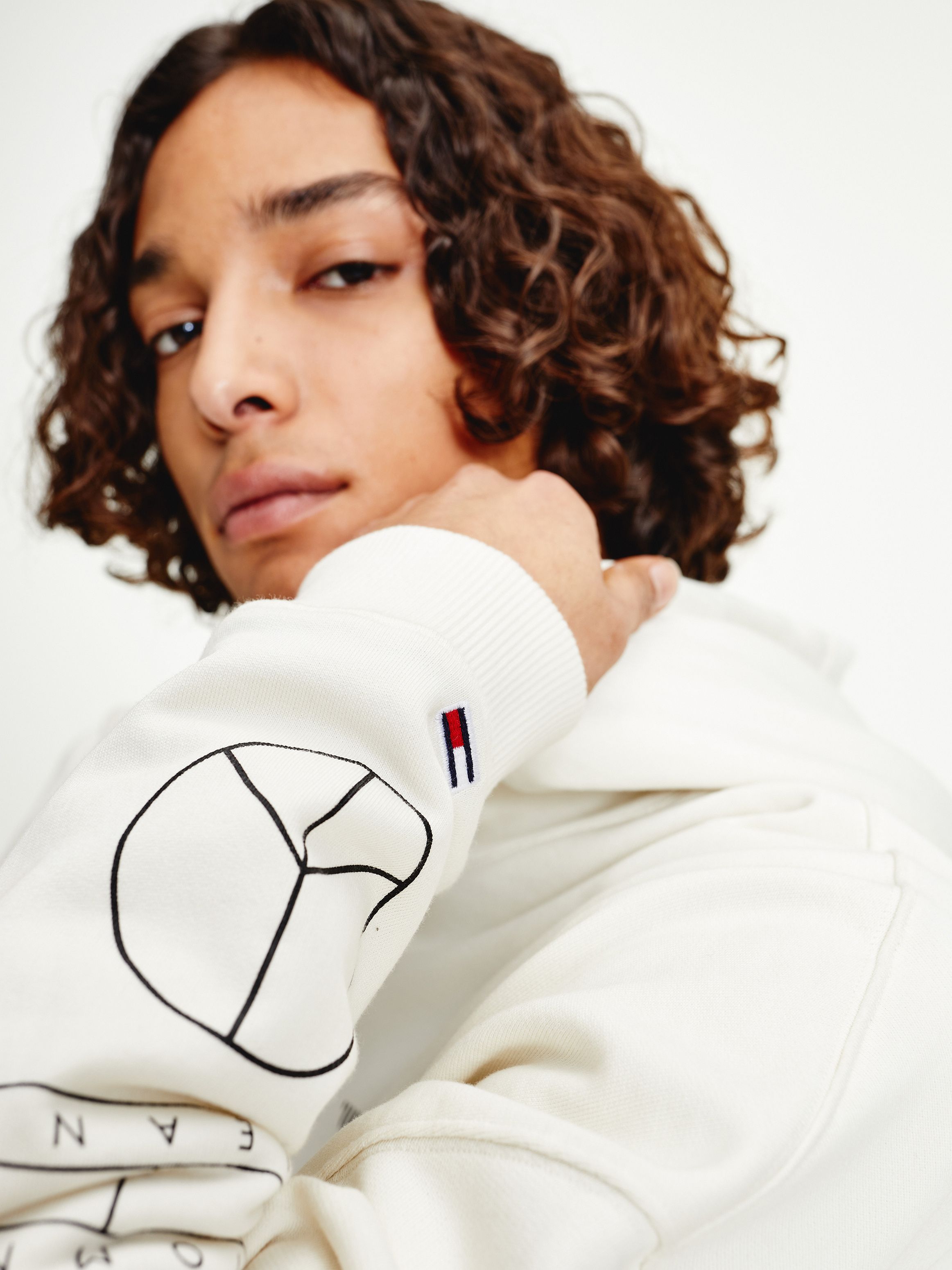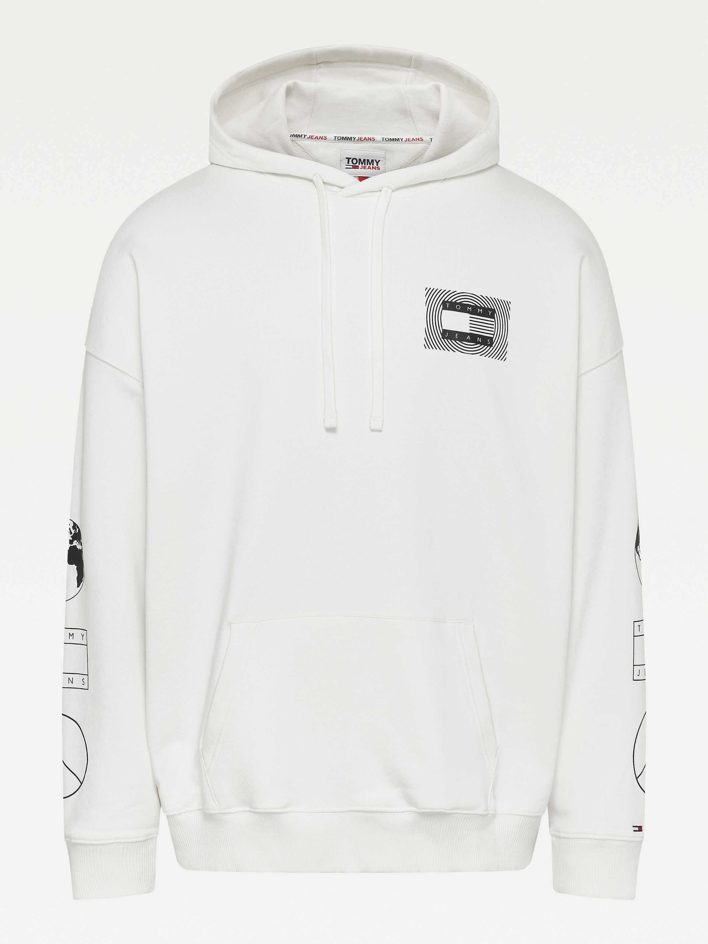 تألق مع هذا الهودي المزين بطبعة تومي جينز، والمصنوع من القطن المعاد تدويره مع طبعات جرافيك على الظهر والذراعين.