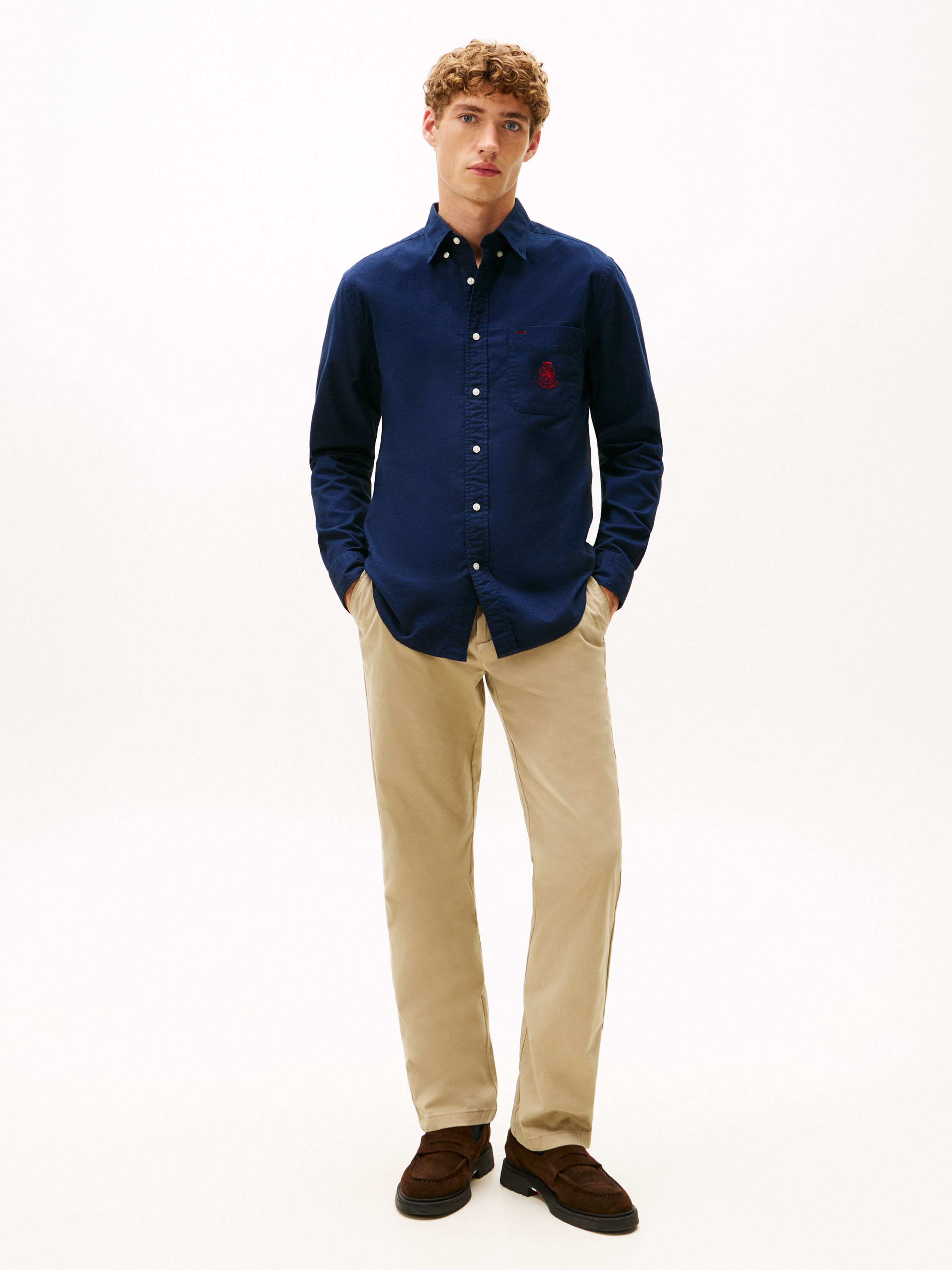 • قميص أكسفورد لقصة عادية مطرز بعلم الشعار