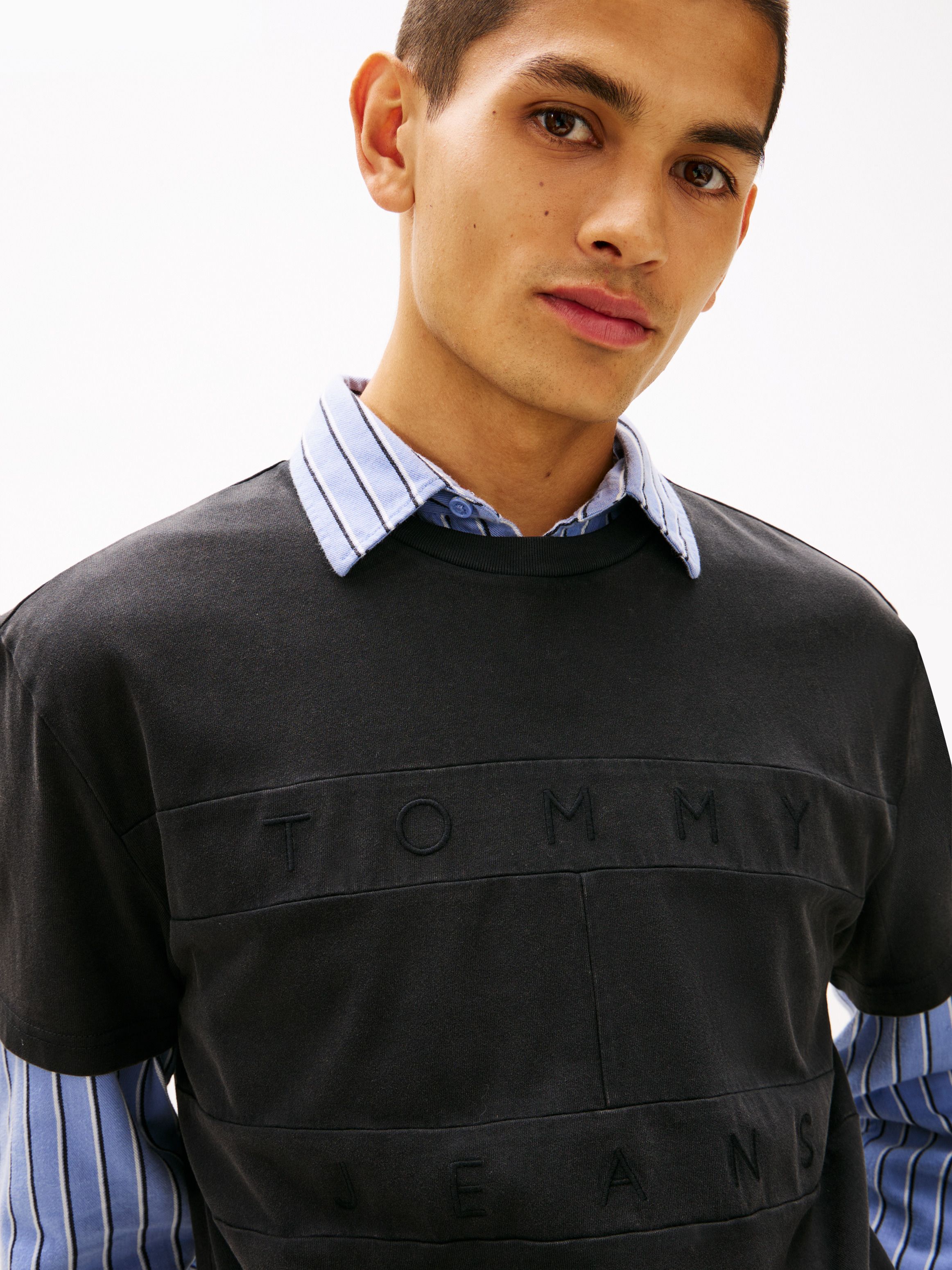 احتفل بعودة موضة التسعينات مع هذا التيشيرت المصنوع من جيرسي قطني نقي والمزيّن بشعار ملمسي بلون واحد وشارة تومي الكلاسيكية. أبرز التفاصيل جيرسي قطني نقي ياقة دائرية تطريز شعار تومي جينز بلون واحد على الصدر علامة تومي جينز القصة قصة عادية الخامة 100% قطن بلد المنشأ: بنغلاديش