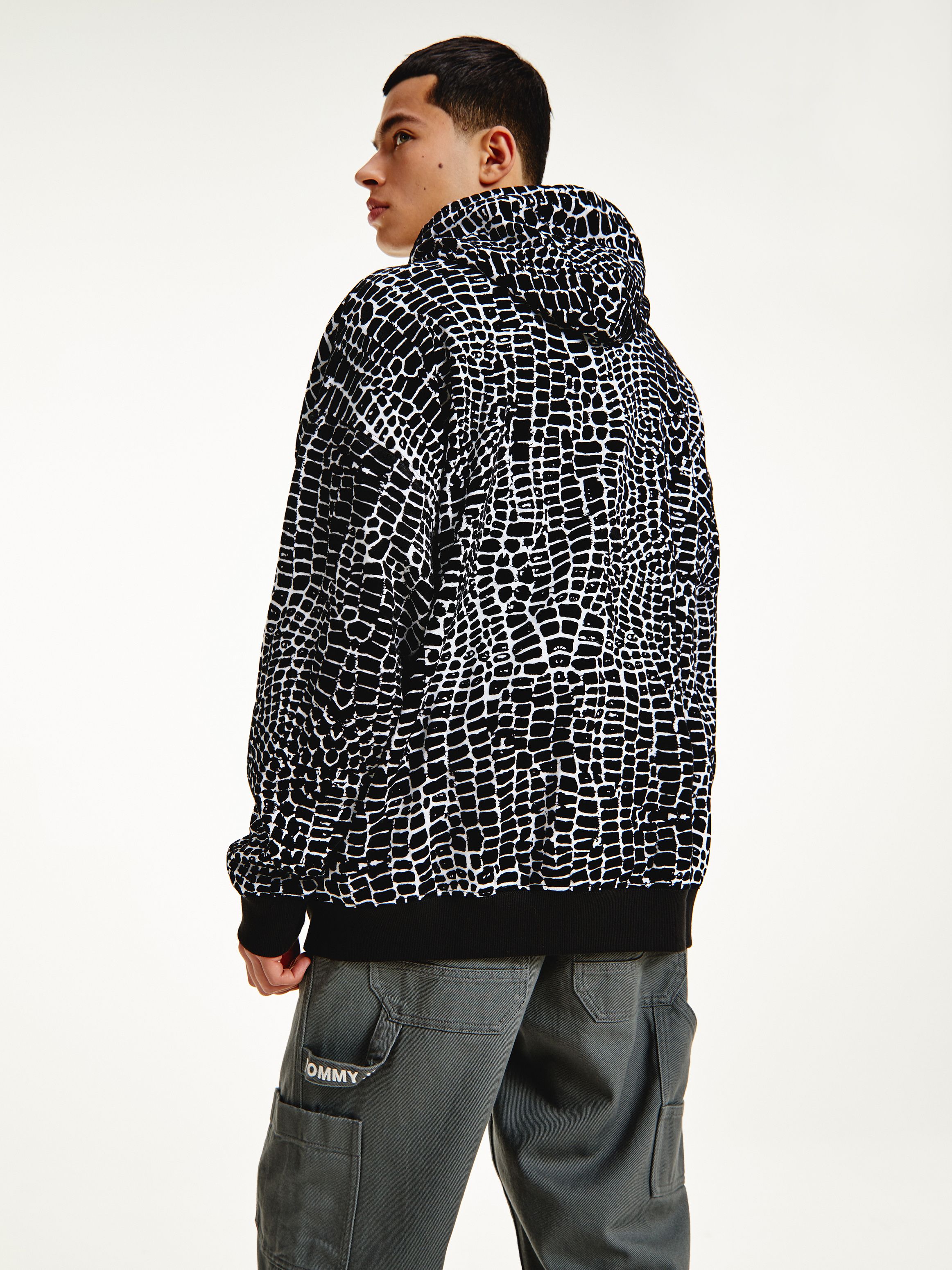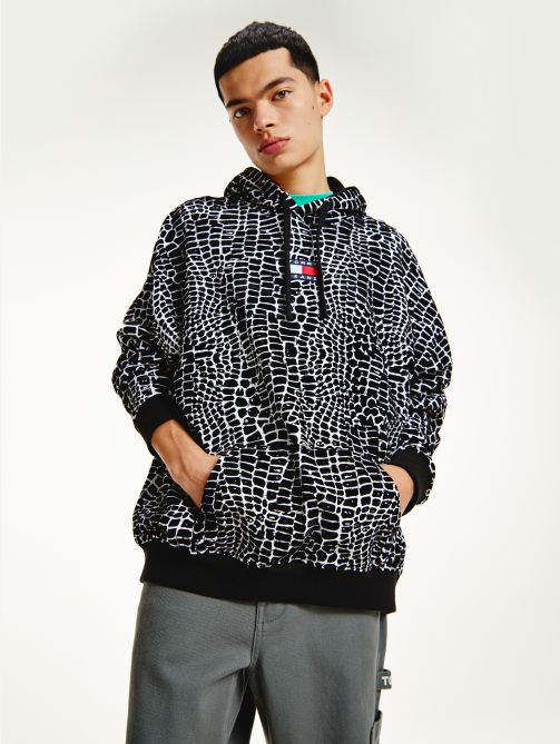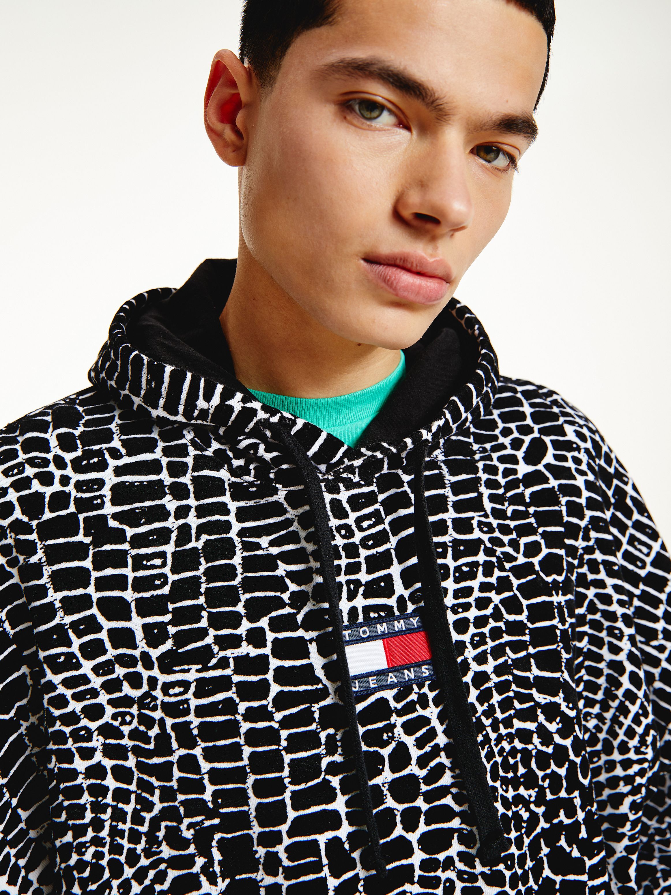 يتميز هذا الهودي من القطن الخالص بتصميم جريء بحمل طبعة جلد الثعبان لمظهر كلاسيكي وراقي خارج أوقات العمل.