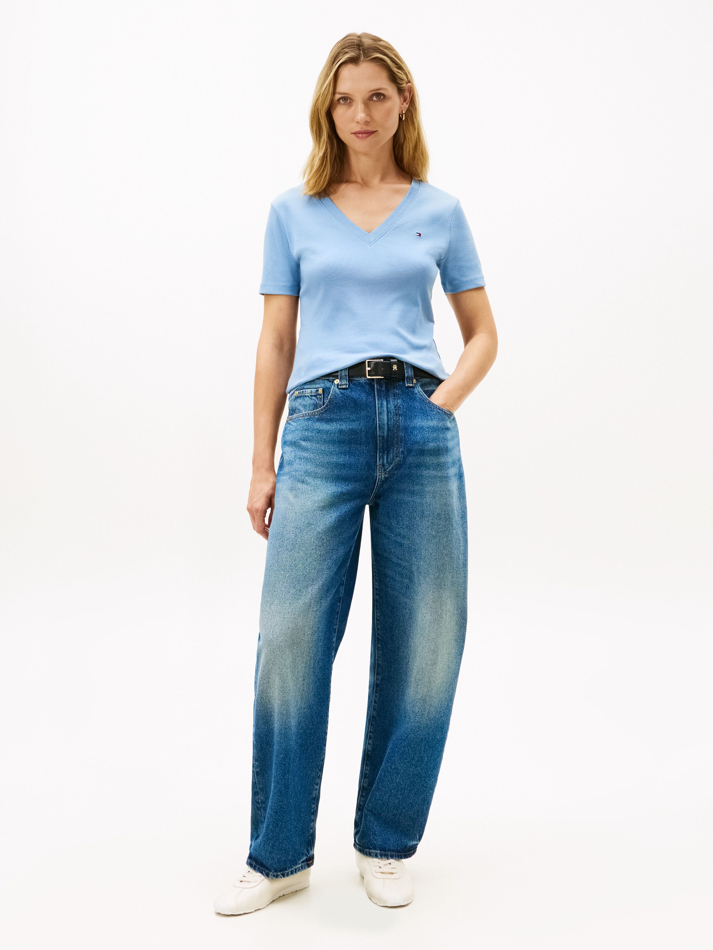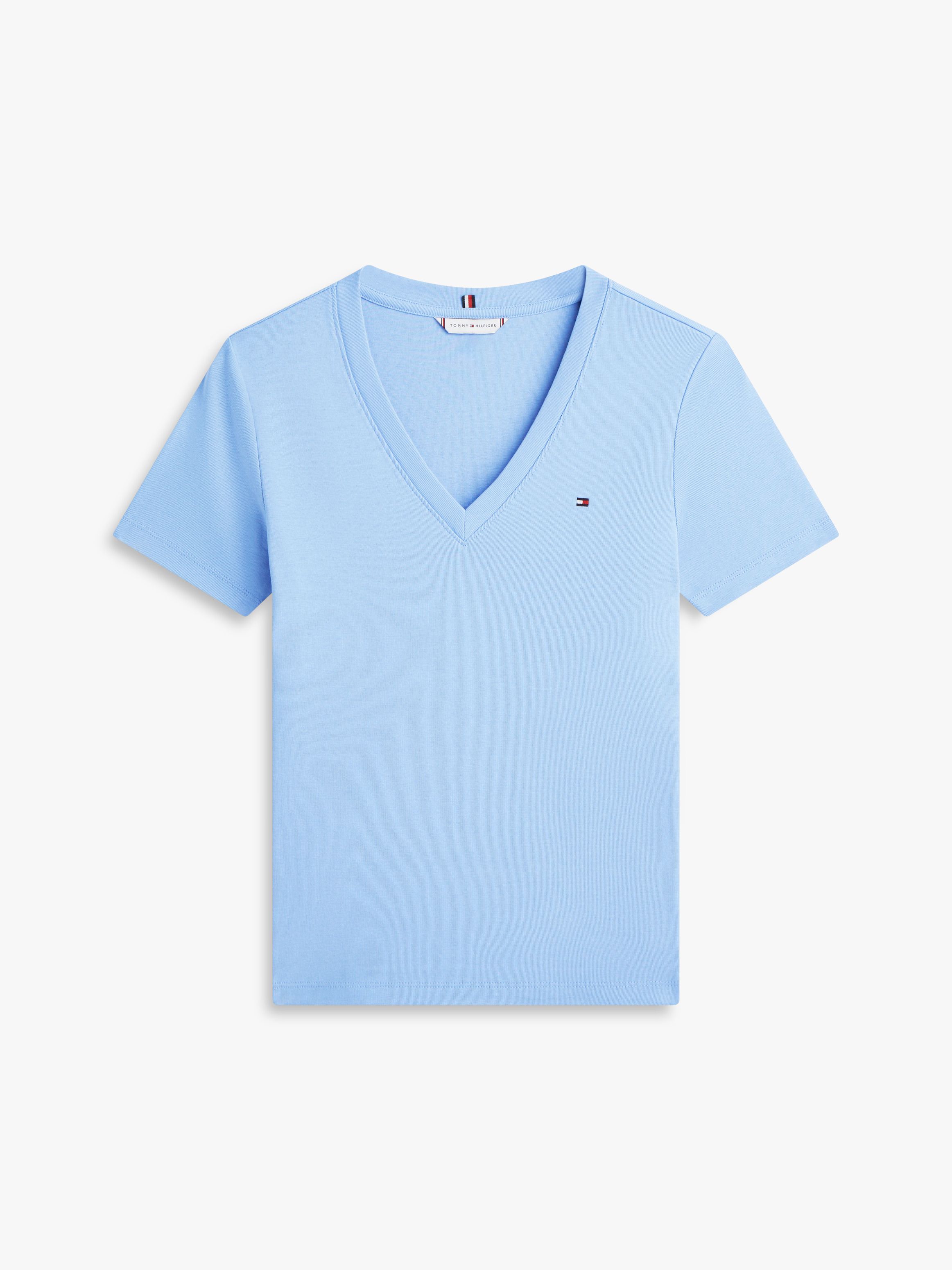 هذا التيشيرت بياقة V مصنوع من قطن نقي مضلّع وبقصّة ضيّقة انسيابية، ليشكل إضافة جذابة وسهلة التنسيق لمجموعة ملابسك اليومية.