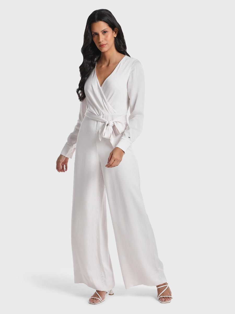 احتفلي بالمناسبات الخاصة وأنتِ بكامل أناقتك مع جمبسوت ساتان باللون الأبيض ومصنوعة من الفيسكوز المستدام. 100% فيسكوز مستدام