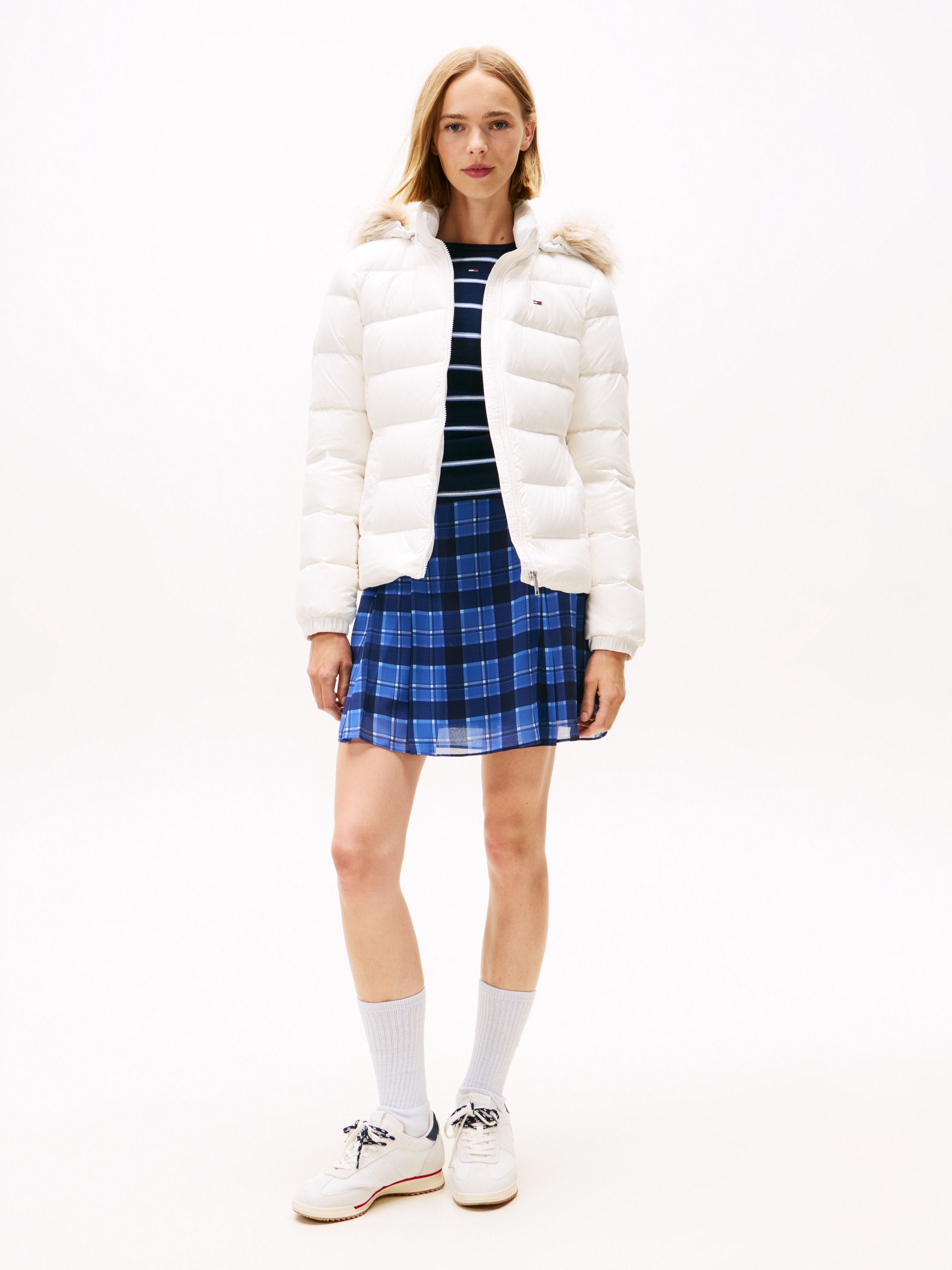 جاكيت بافر مبطن ولامع مقاوم للماء، مثالي لأمسيات الشتاء الباردة، بتصميم أنيق يجمع بين الدفء والمظهر العصري. يتميز بغطاء رأس ثابت مع حافة فرو صناعي قابلة للإزالة تمنحك إطلالة جذابة ودفئًا إضافيًا.