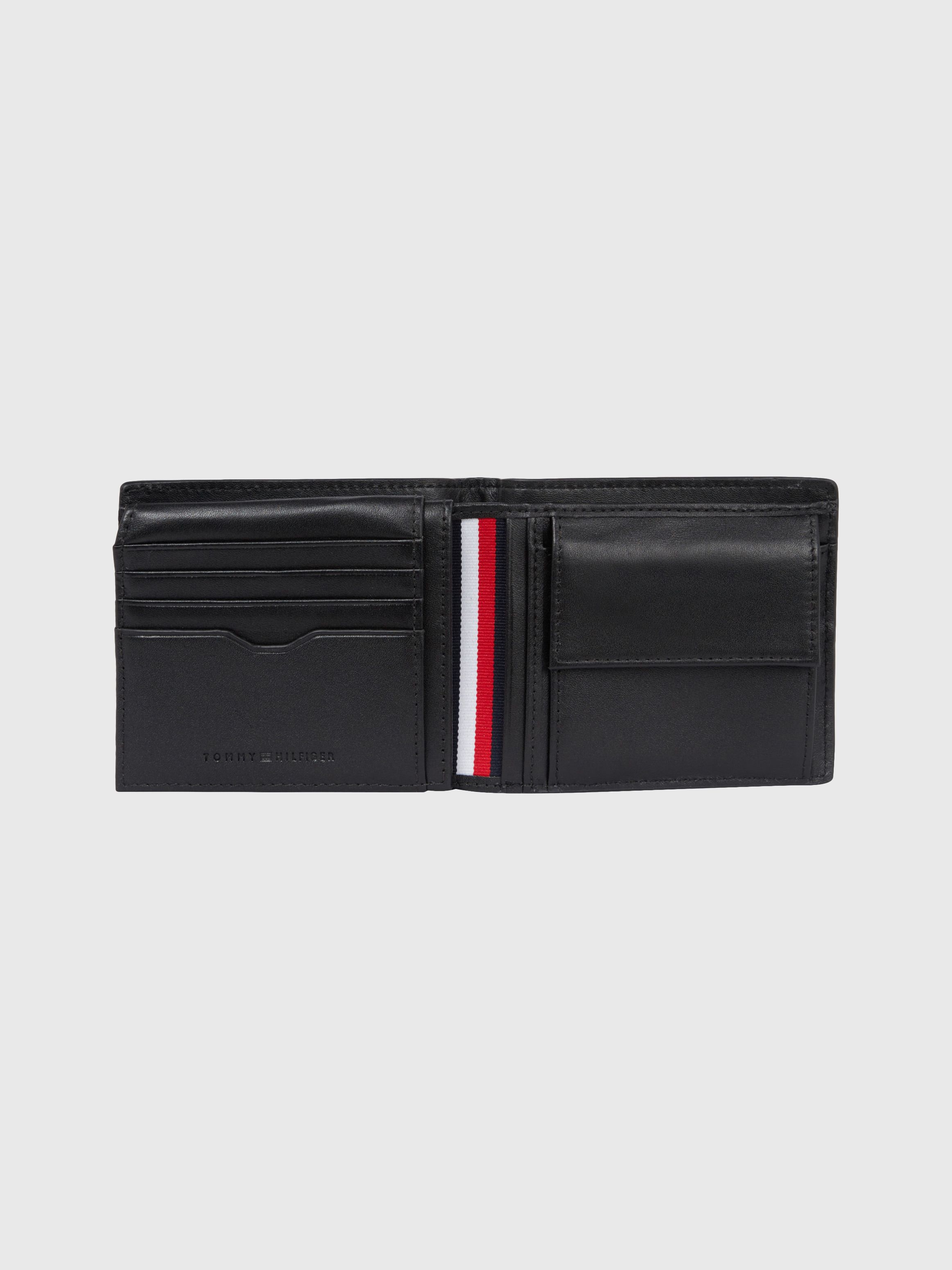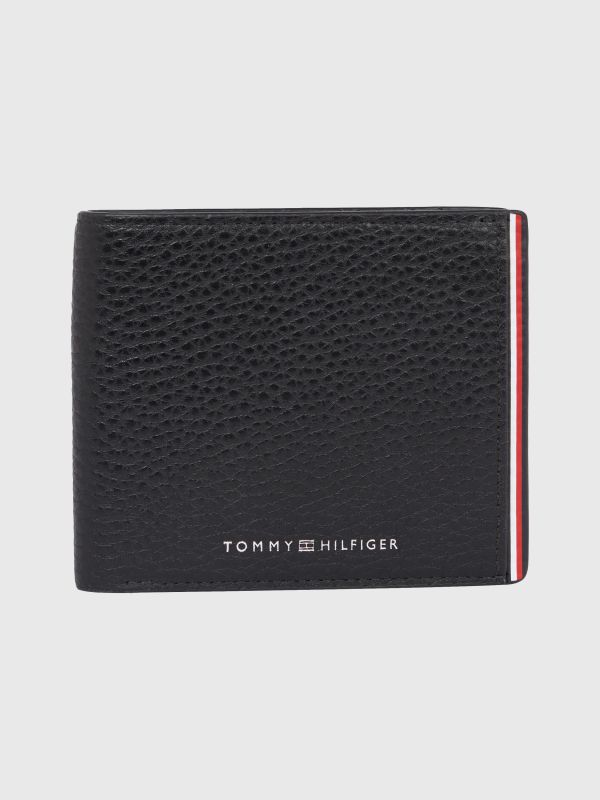 • جلد • من مجموعة أعمال التصميم الجلدية • ملمس حبيبات خشن • تصميم ثنائي الطي • جيب داخلي مطوي • جيب داخلي بغطاء • فتحات بطاقات داخلية متعددة على الغطاء • شريط مزين بالشعار من الداخل • علامة تومي هيلفيغر التجارية