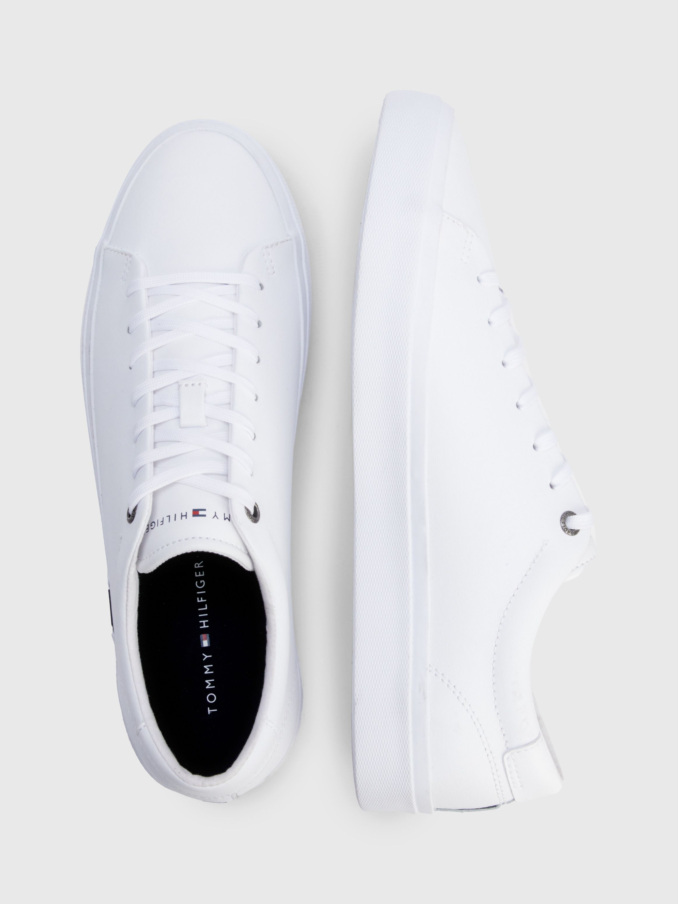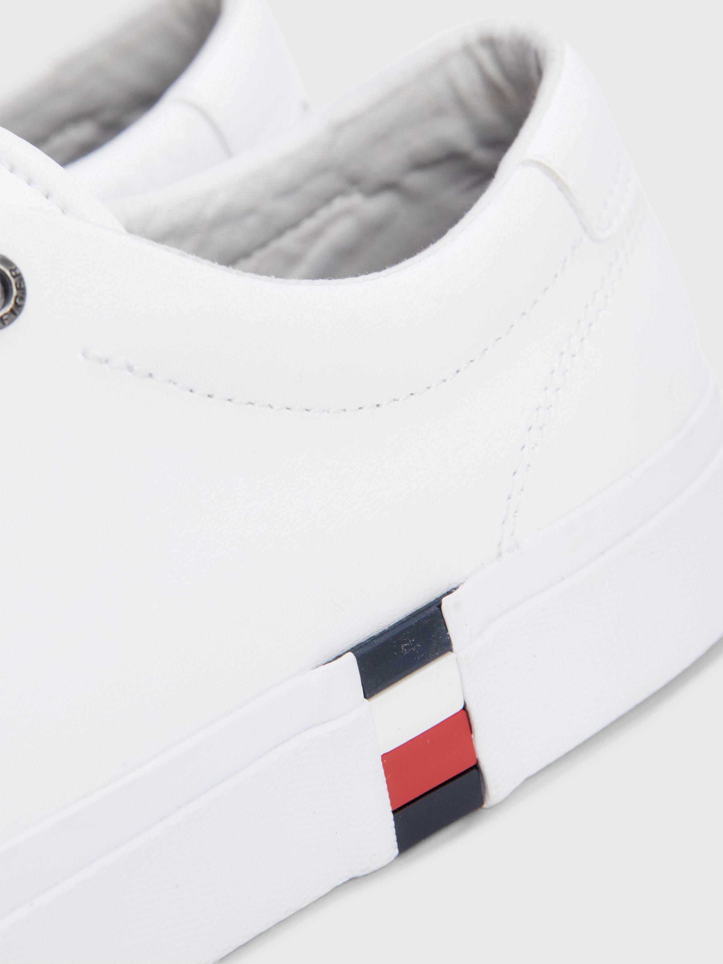 • جزء علوي من مزيج الجلد • بطانة قطن • نعل داخلي من البولي يوريثين والبولي يوريثين المعاد تدويره والمطاط الحراري المعاد تدويره • نعل خارجي من المطاط البركاني والمطاط الطبيعي • شريط توقيع على النعل الأوسط • شعار تومي هيلفيغر على اللسان • علامة تومي هيلفيغر التجارية