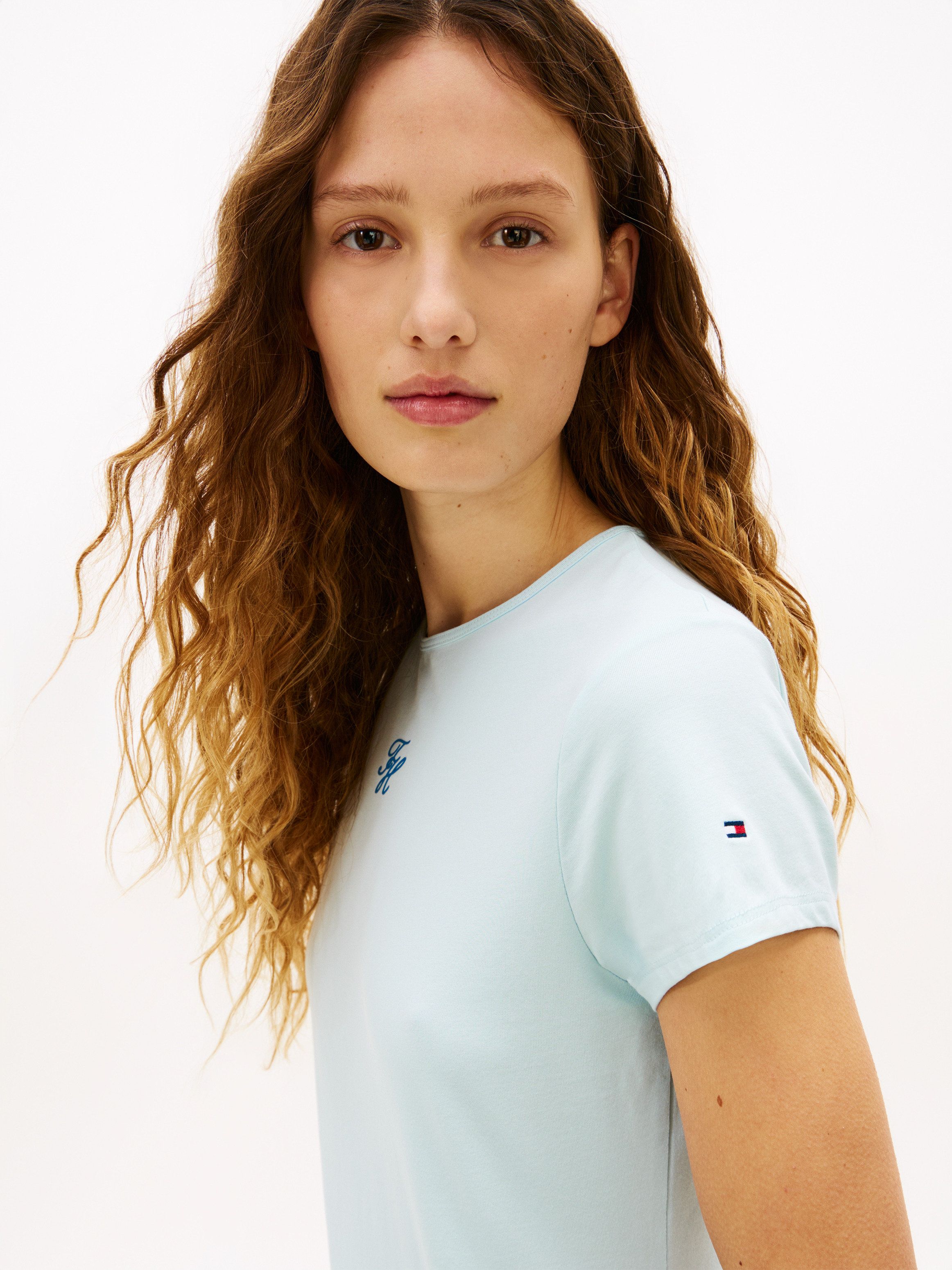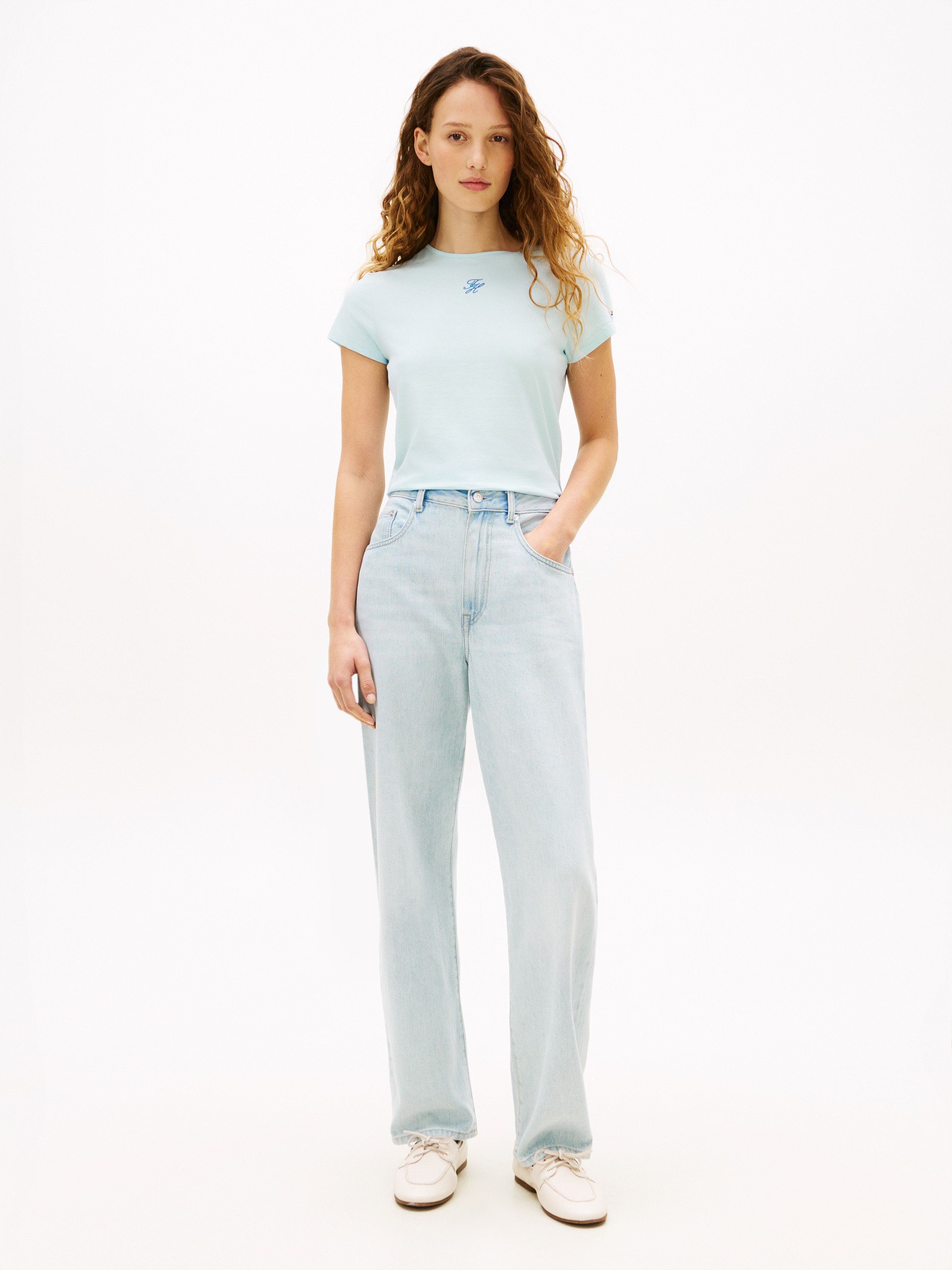 هذا التيشيرت بقصة ضيقة مصنوع من جيرسي قطني مطاطي مع شعار سكريبت بارز لمظهر أنيق.