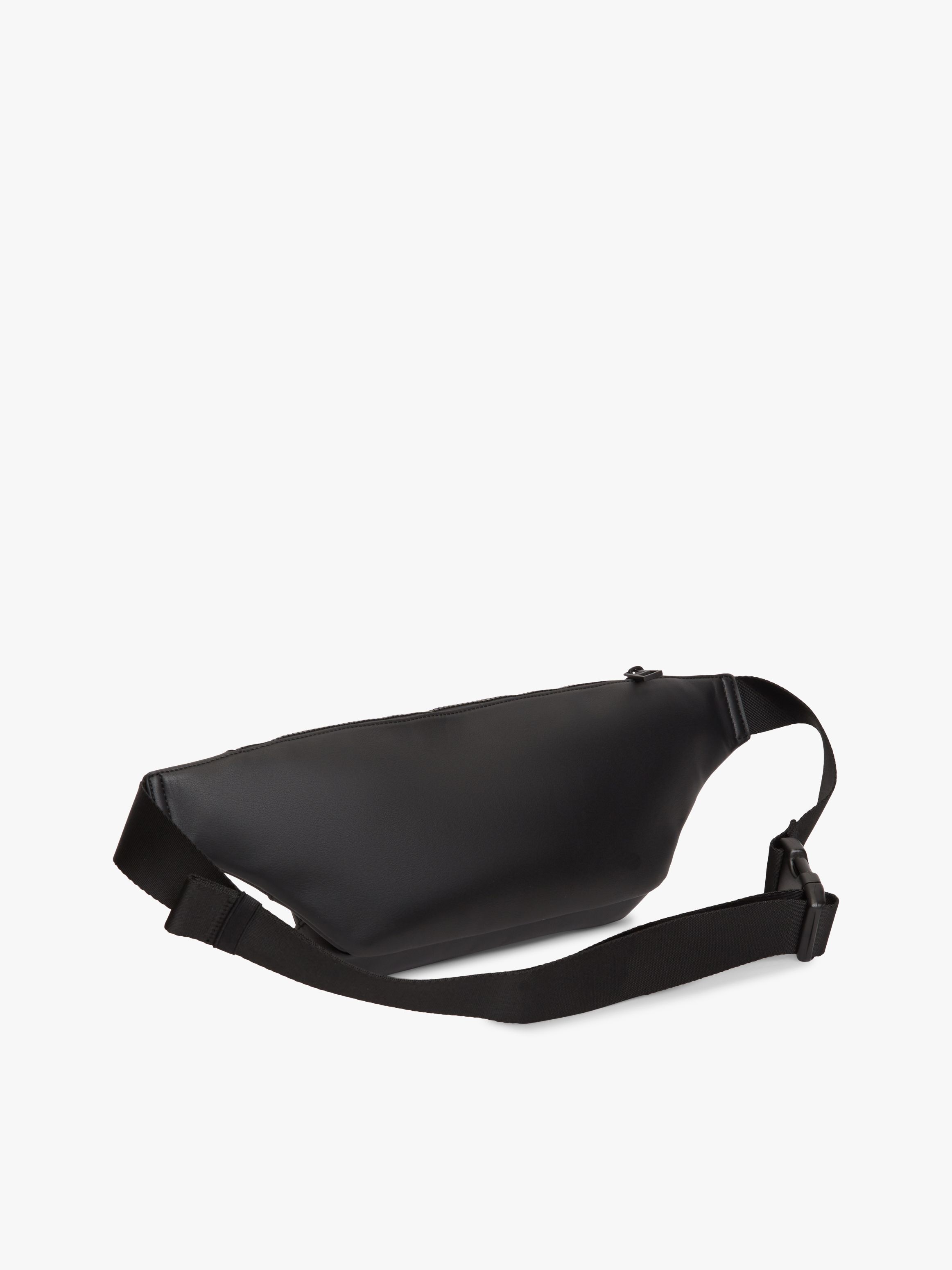 • حقيبة خصر بنسيج محبب مزينة بشعار معدني