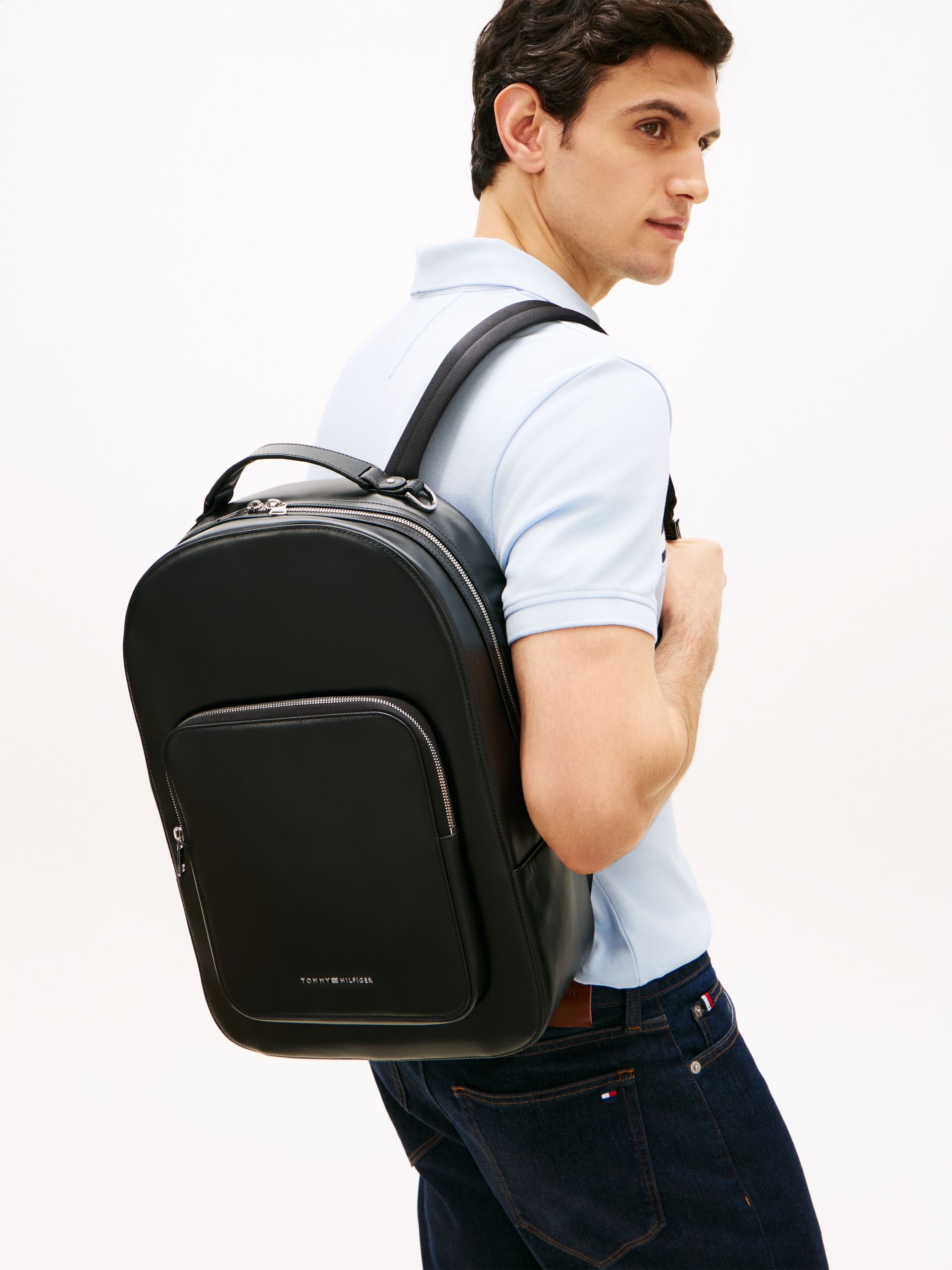 تُعد هذه الحقيبة الظهر الجلدية خيارًا أنيقًا لحمل مستلزماتك اليومية إلى العمل، بفضل تصميمها المقبب الانسيابي وشعارها المعدني الراقي. أبرز التفاصيل جلد طبيعي لمسة نهائية ناعمة تصميم مقبب حجرة مخصصة للابتوب إغلاق بسحاب مزدوج مقبض علوي واحد أحزمة كتف مبطنة قابلة للتعديل حجرة رئيسية واحدة جيب داخلي بسحاب جيب خارجي بسحاب ظهر شبكي مبطن حزام تثبيت على حقيبة السفر تفاصيل مميزة على حزام الكتف شعار تومي هيلفيغر المعدني في الأمام علامة تومي هيلفيغر القصة والمقاس 32 × 13.5 × 42 سم السعة 7 لتر الخامة والعناية 100% جلد