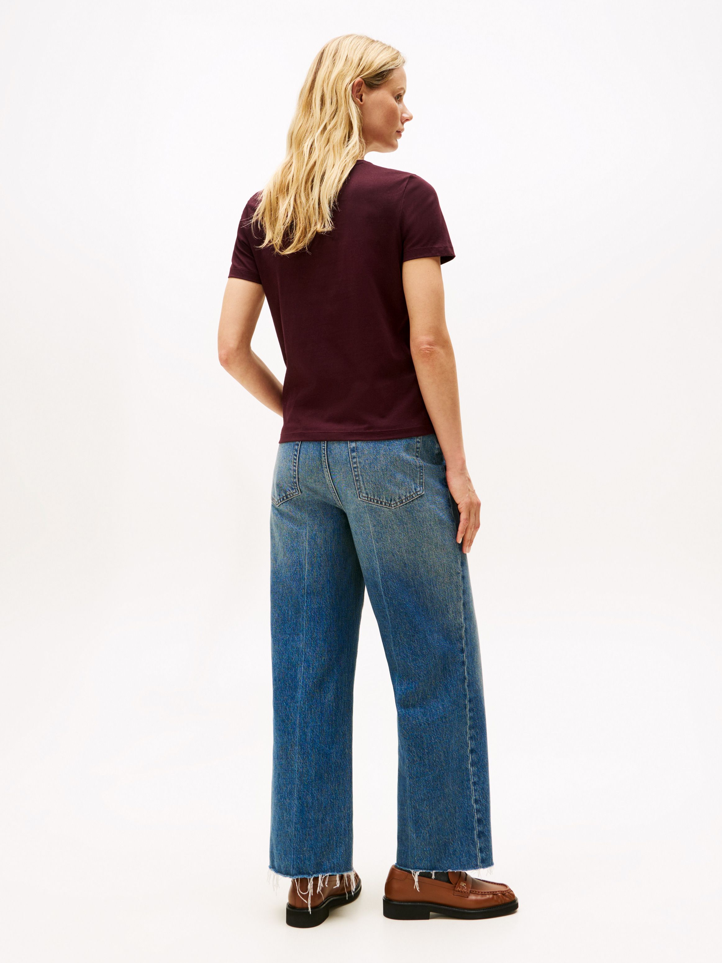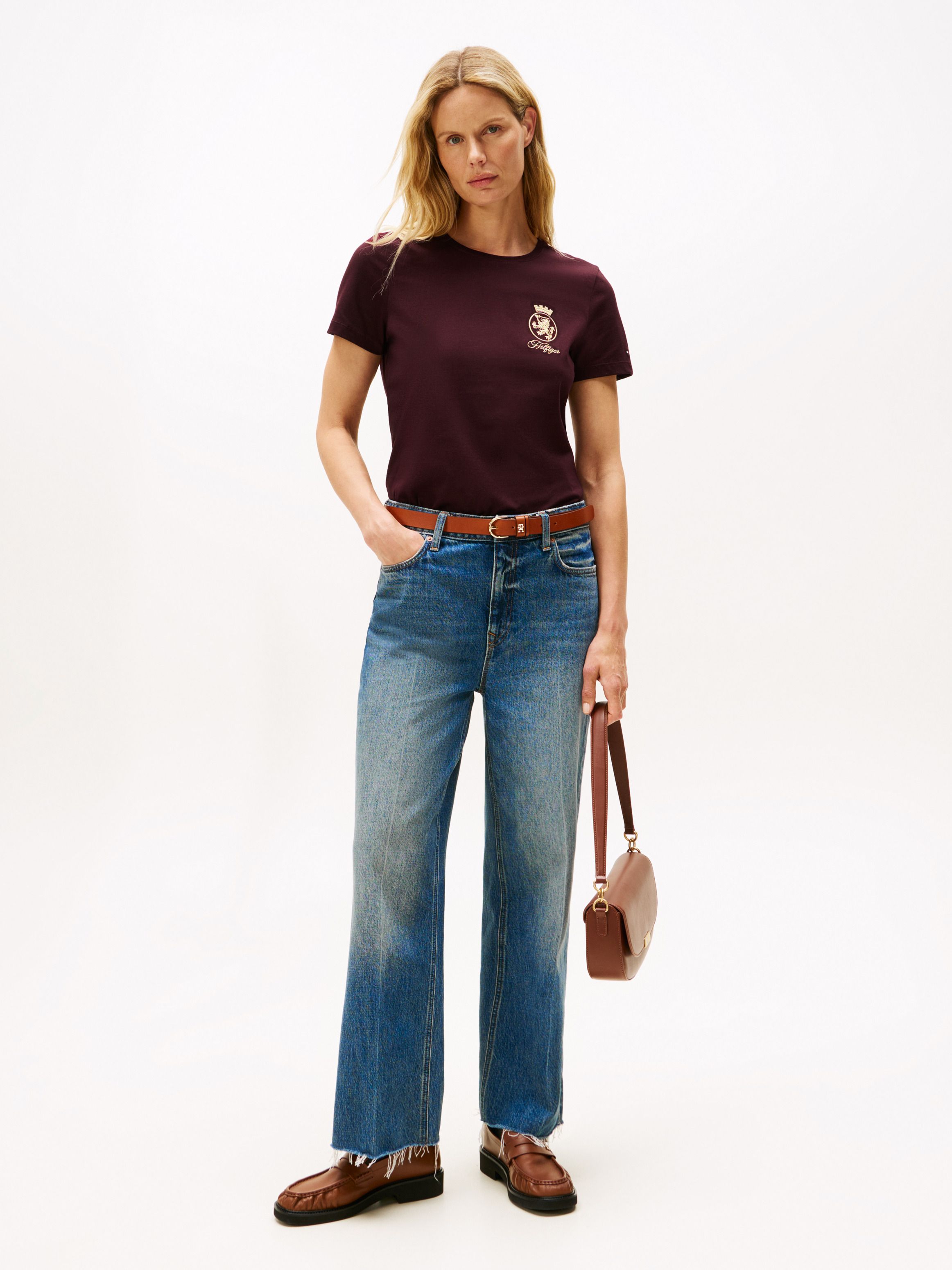 احصلي على لمسة راقية لأي إطلالة يومية مع هذا التيشيرت المصنوع من جيرسي قطني نقي، والمزدان بتطريز شعار crest ذهبي فاخر على الصدر يعكس التفرد والرقي.