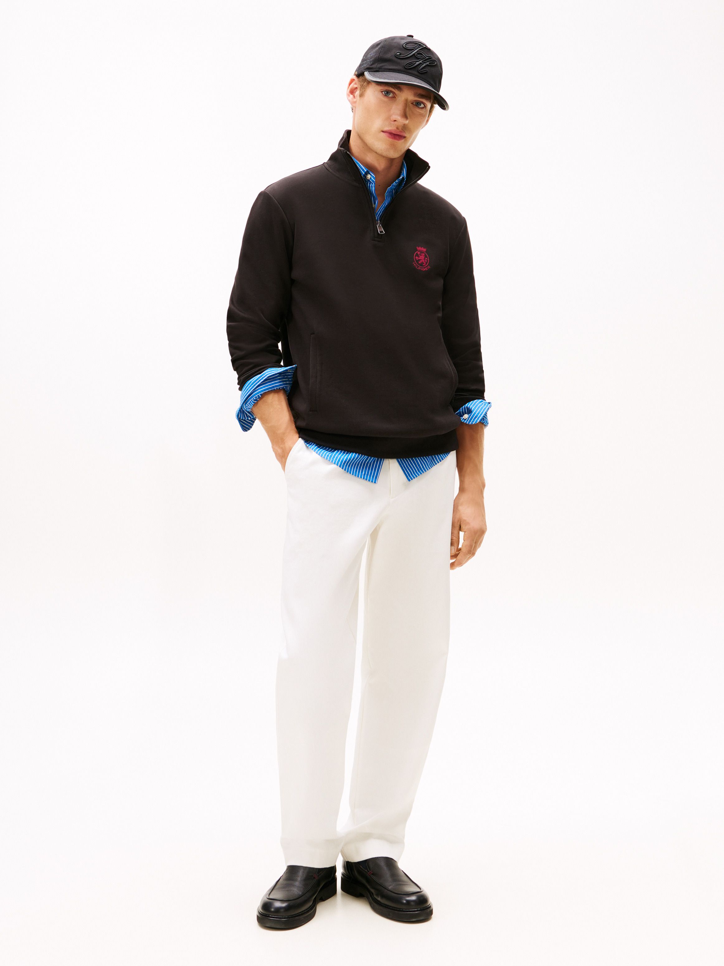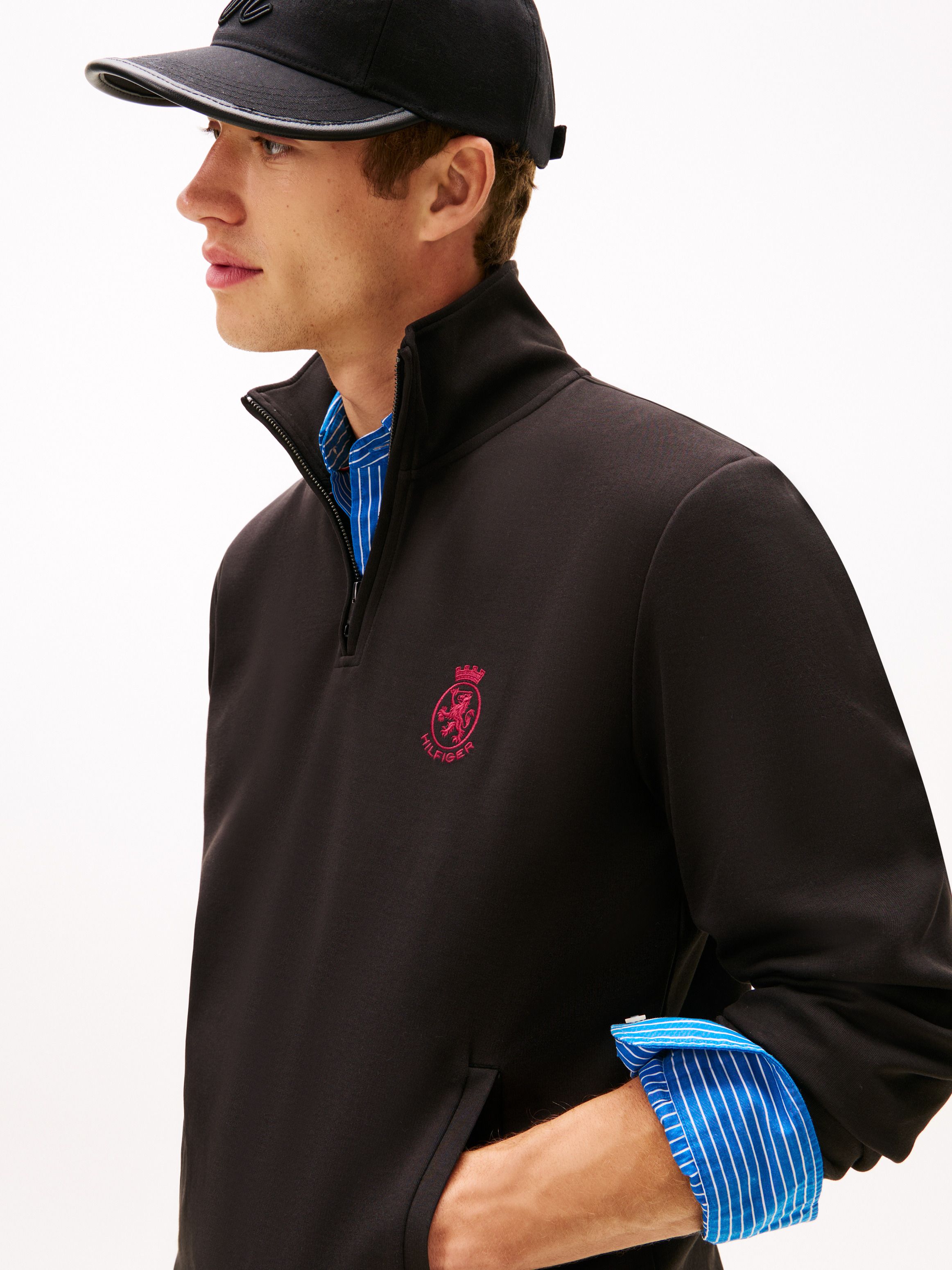 بلوفر بربع سحاب مطرز بشعار TH