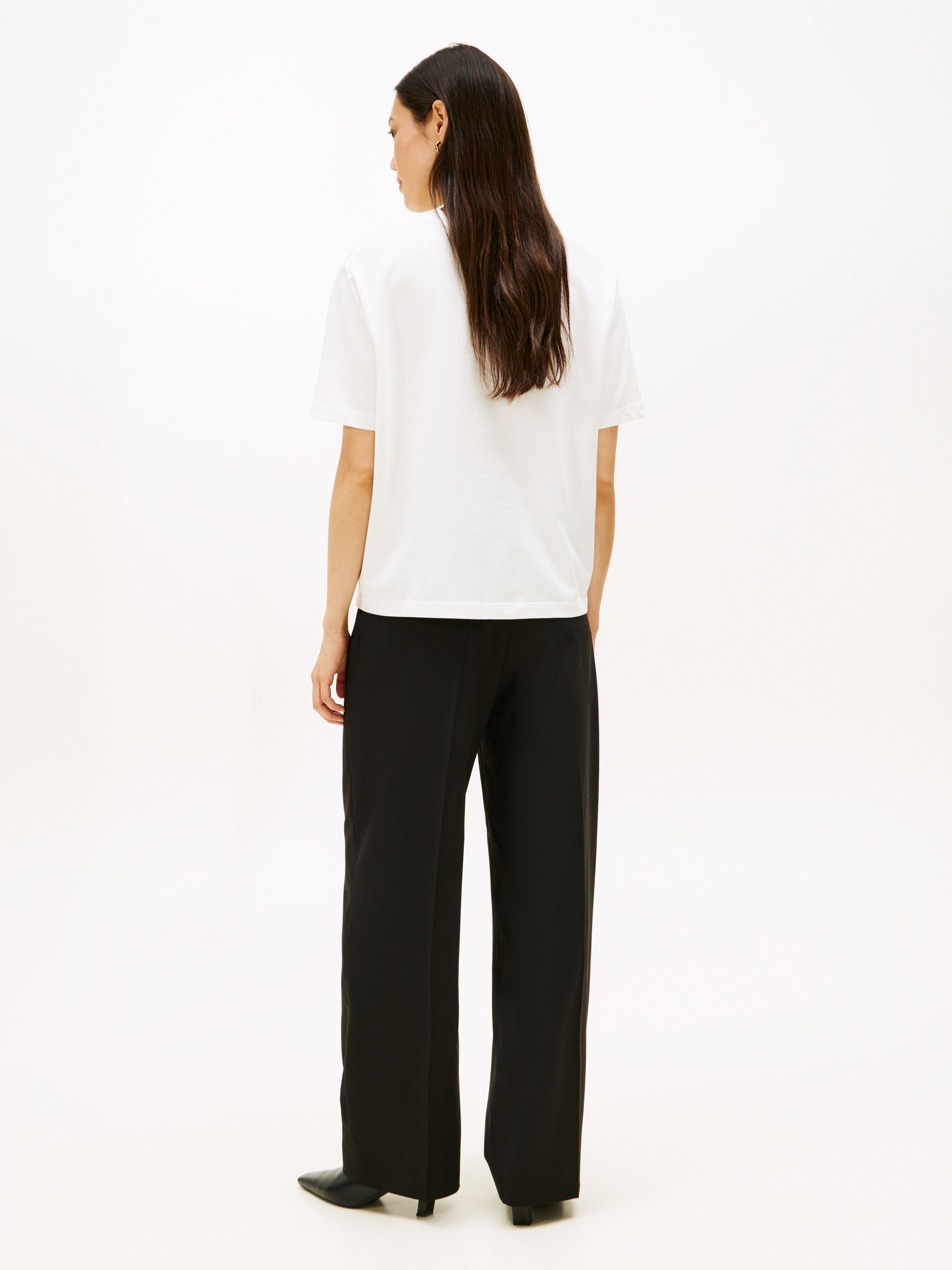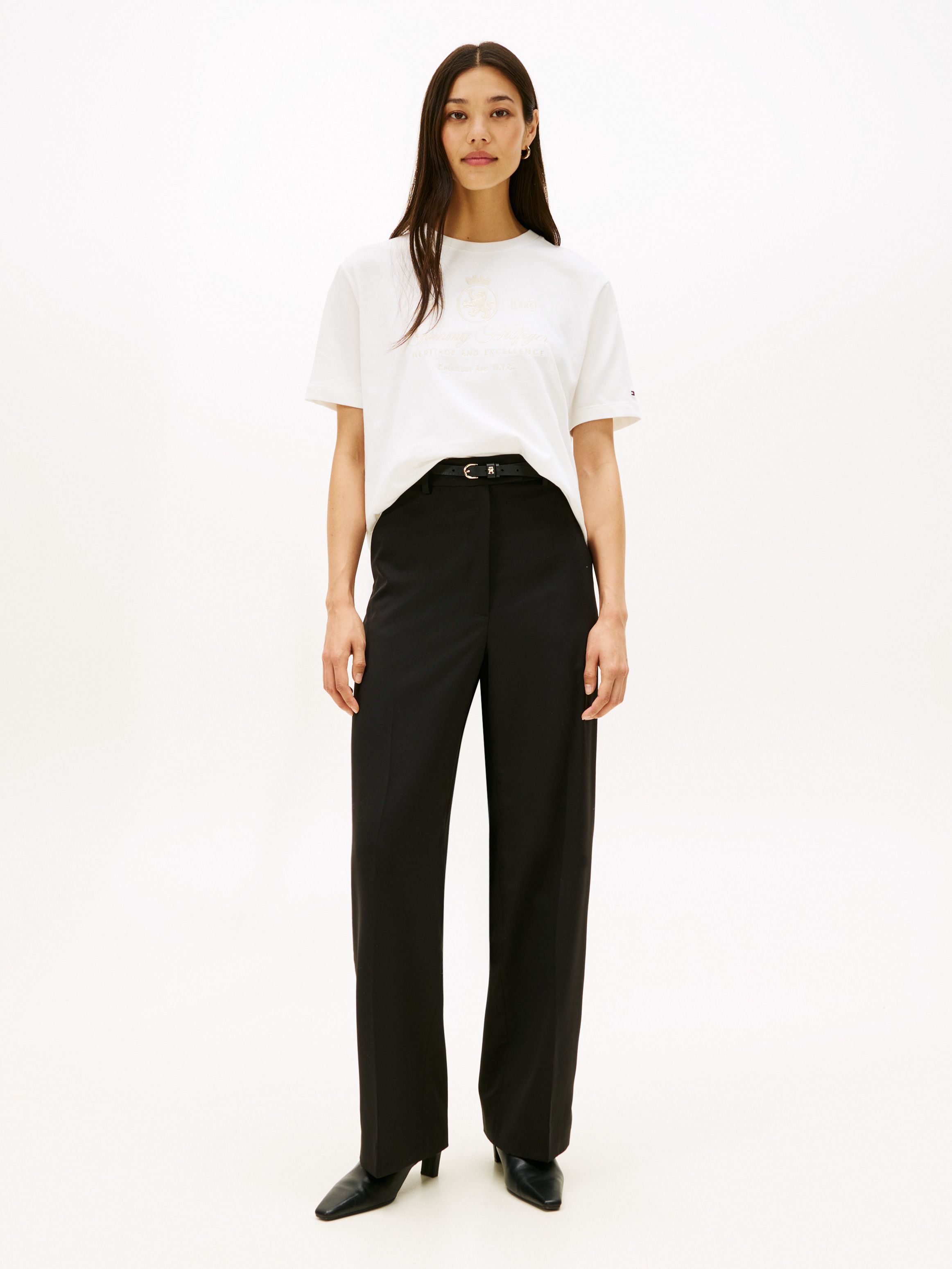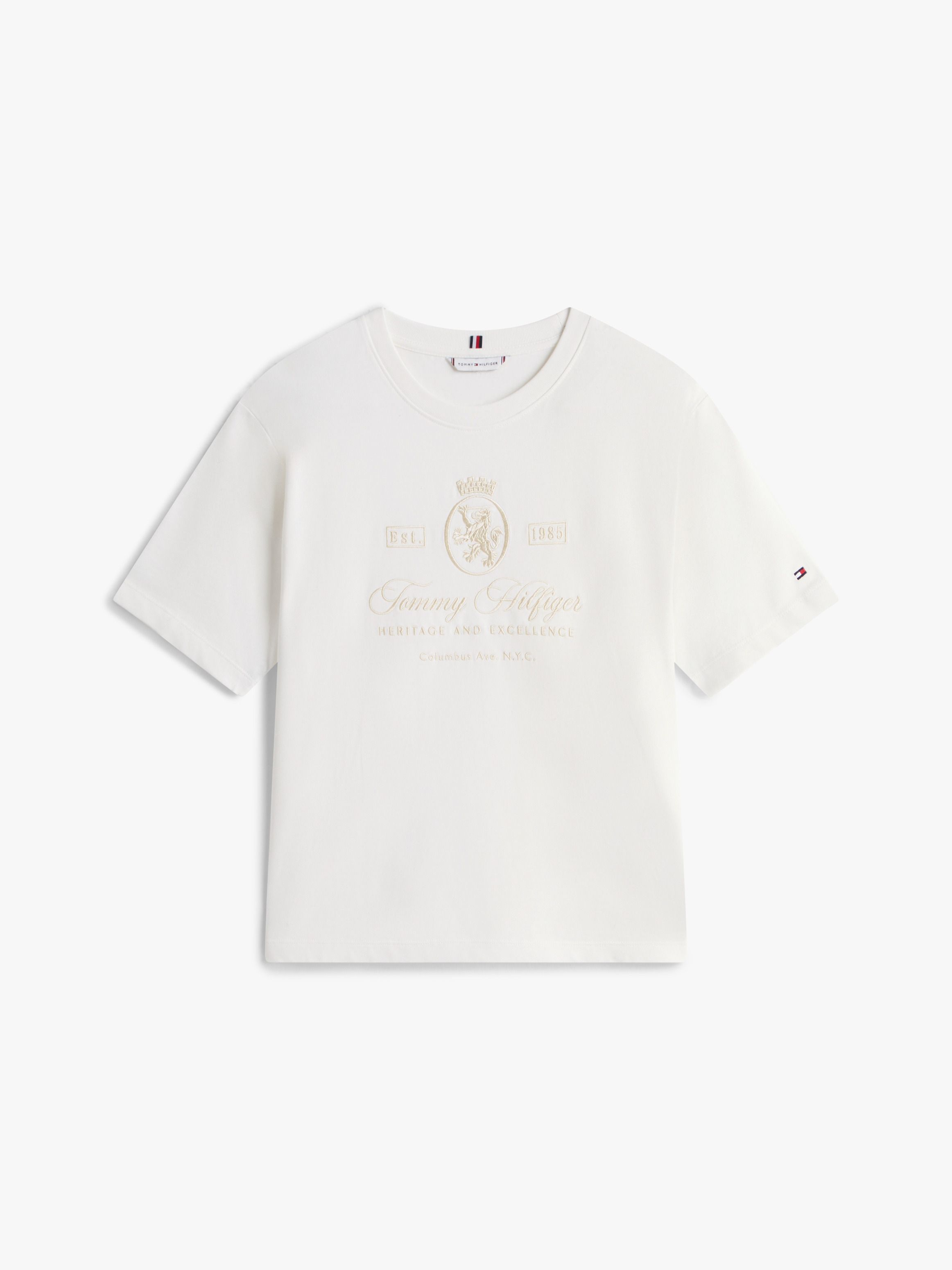 اعتمدي أسلوبًا مريحًا مستوحًى من الطابع الجامعي مع هذا التيشيرت المصنوع من قطن جيرسي خفيف الوزن، ويتميز بقصّة مريحة وتطريز شعار TH البارز على الصدر لمظهر كلاسيكي بأناقة عصرية.