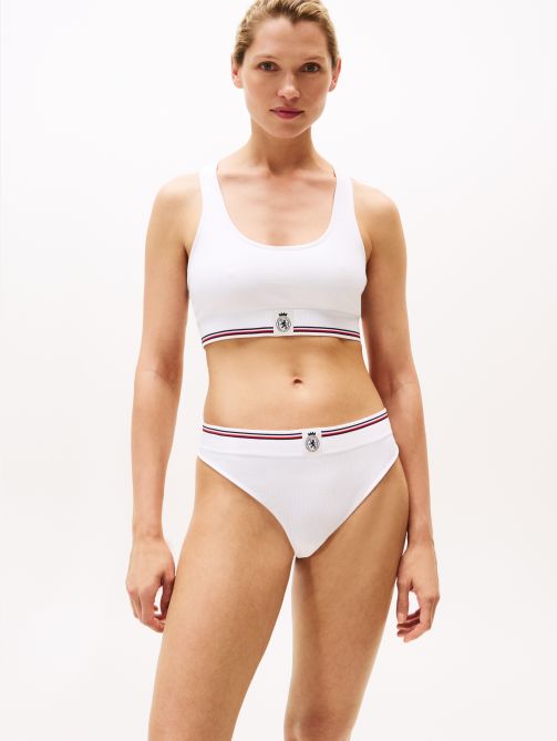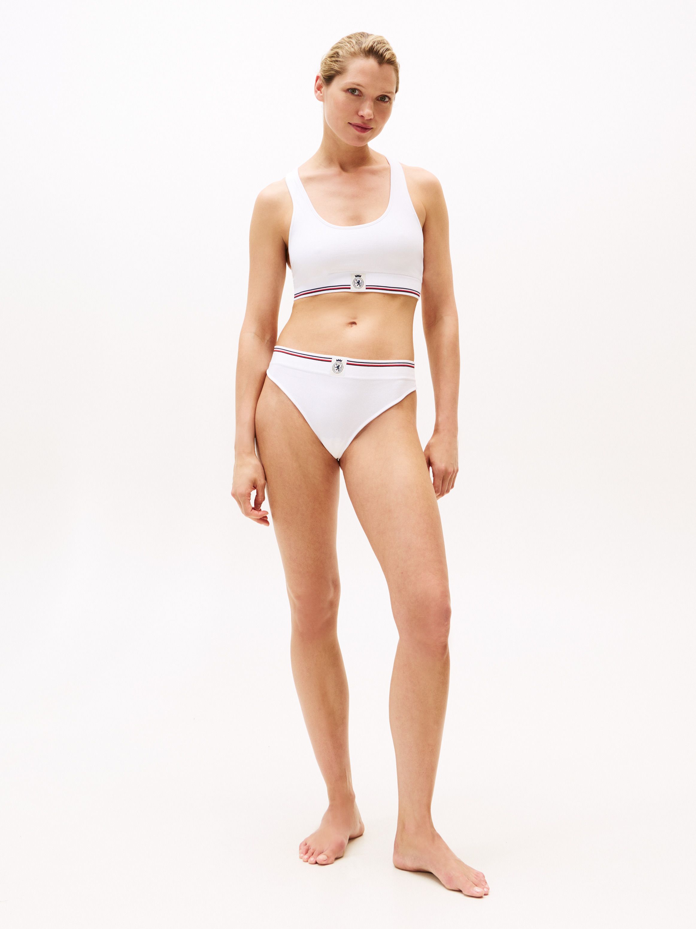 استمتعي بالأناقة والراحة في آنٍ واحد مع حمالة الصدر الرياضية بنقشة مضلعة وبتصميم ظهر متقاطع مزينة بشعار TH، حيث تجمع بين الدعم الخفيف والمظهر الرياضي المميز، لتكون مثالية للاسترخاء أو الطبقات الخفيفة.