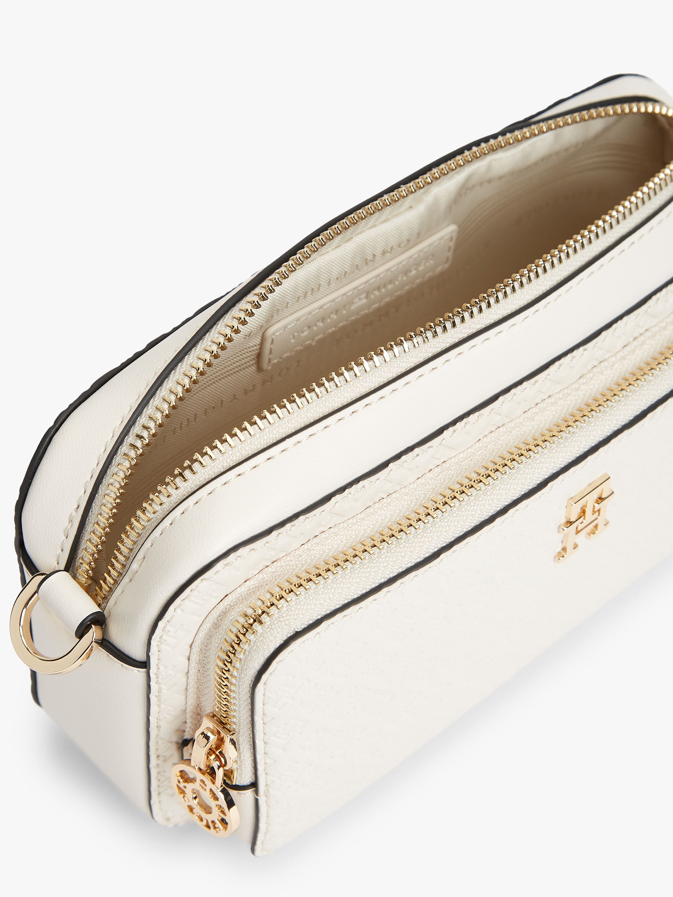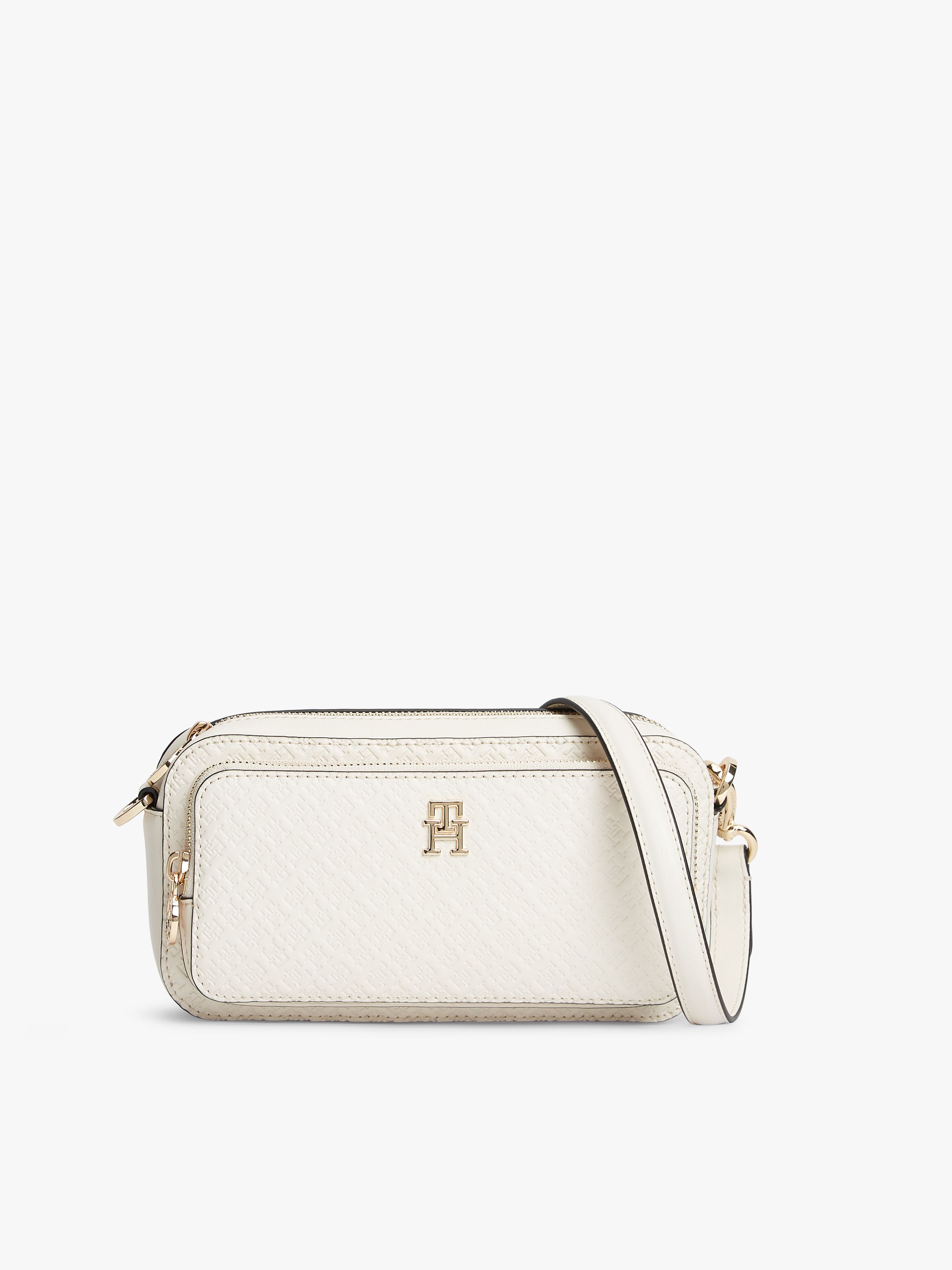 توفر حقيبة الكاميرا هذه مساحة عملية للأغراض الأساسية مع جيب أمامي، بينما يعزز نقش حروف TH البارز طابعها الأنيق.