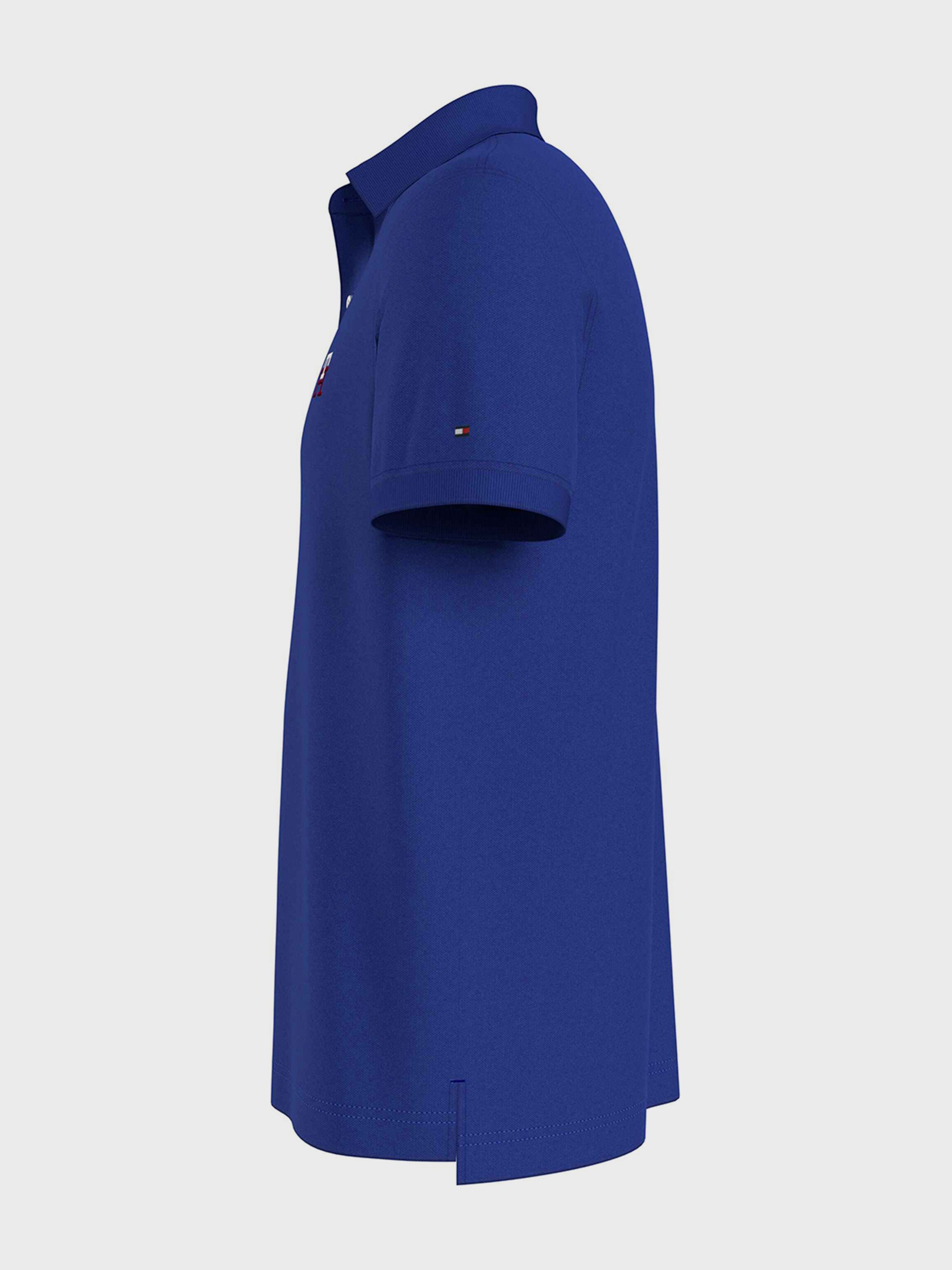 احصل على تيشيرت بولو مزين بحروف الشعار ومصنوع من نسيج معاد تدويره ويتميز بتطريز بارز.