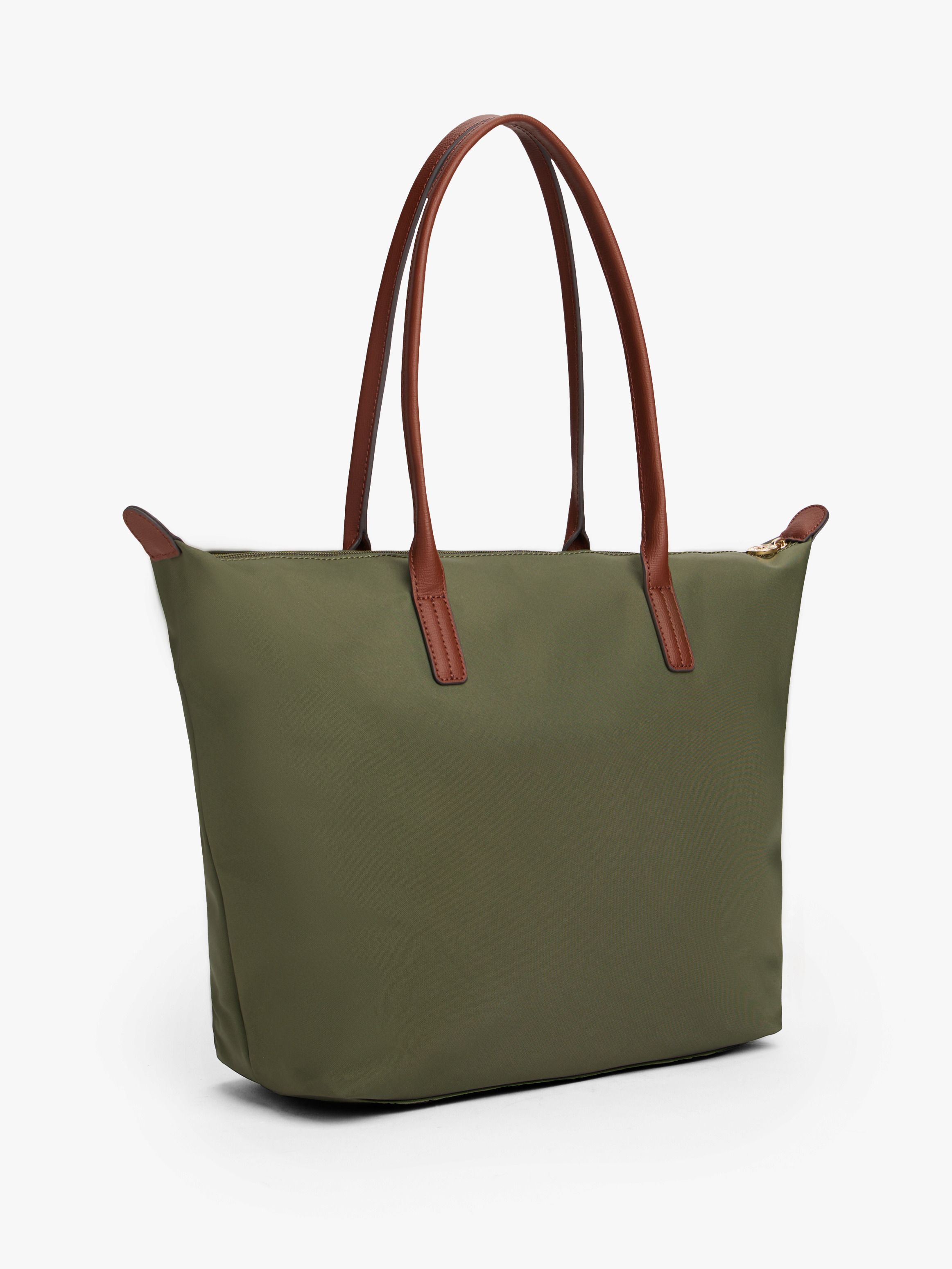تألقي بإطلالة أنيقة وعملية مع حقيبة توت مزينة بحروف الشعار، بتصميم واسع وناعم مصنوع من النايلون، يجمع بين الطابع الكلاسيكي واللمسة العصرية الفاخرة بفضل لوحة شعار TH على الجهة الأمامية وتفاصيل داخلية منظمة تسهّل الاستخدام اليومي.