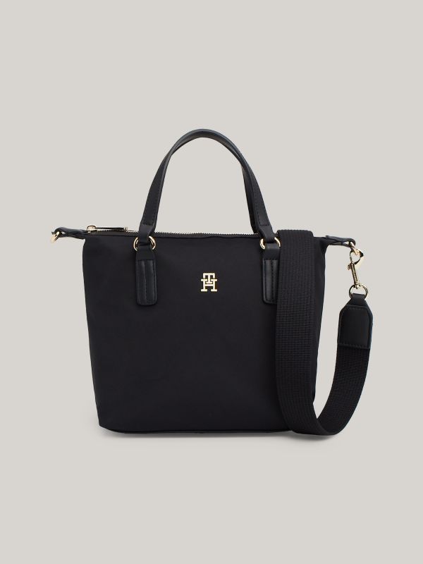 • ملمس ناعم • تُغلق بسحاب • مقبضين علويين • حزام كروس قابل للإزالة والتعديل • قسم رئيسي واحد • لوحة حروف شعار تومي هيلفيغر من الأمام • علامة تومي هيلفيغر التجارية