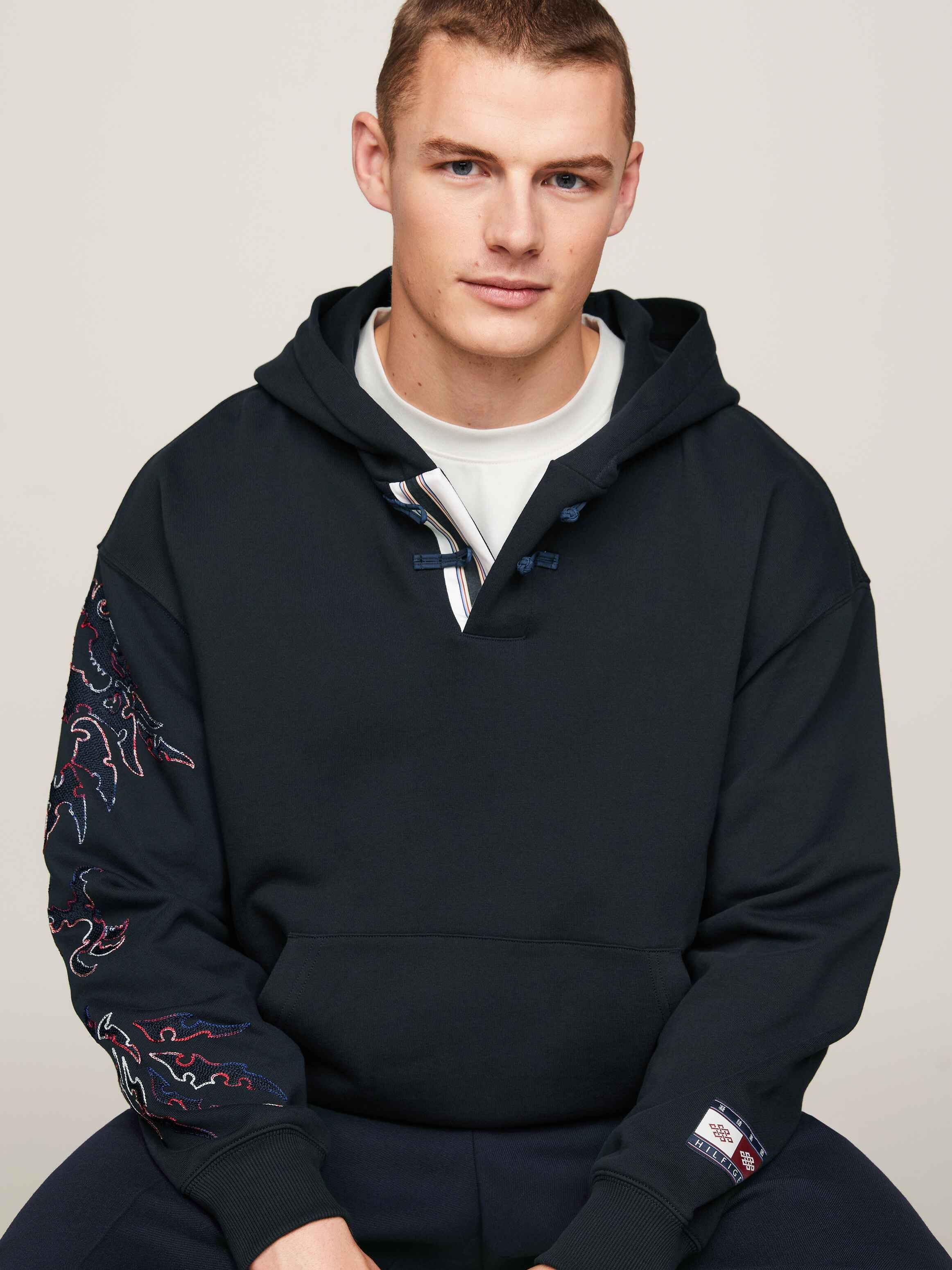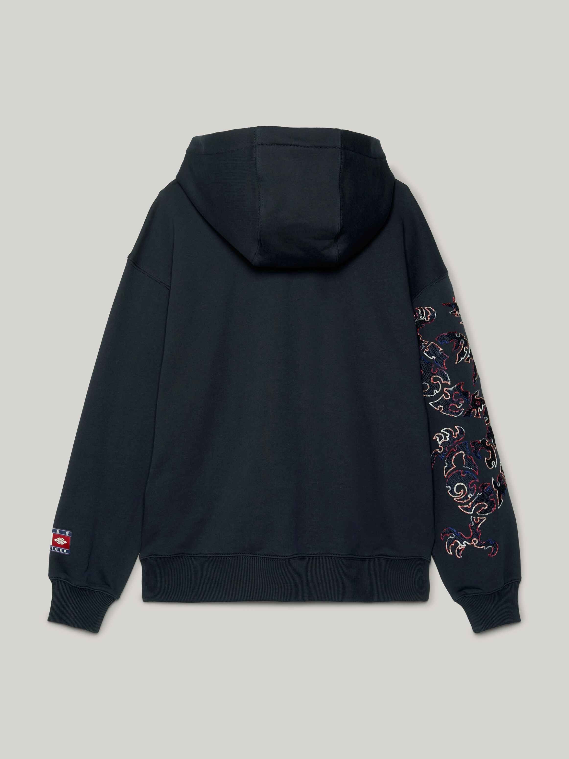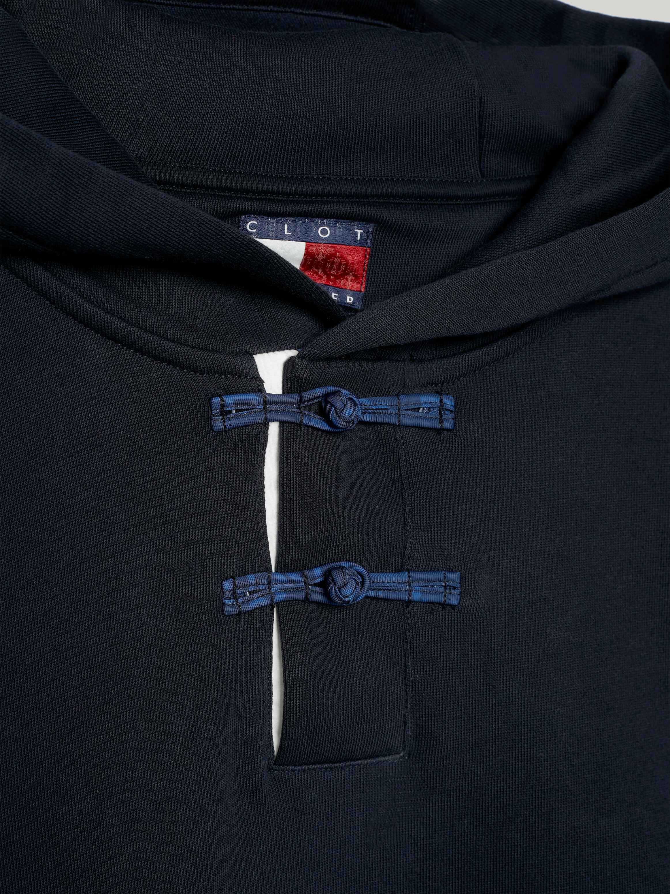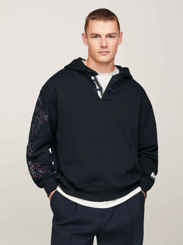 • قطن تيري عضوي نقي • شعار تومي كلوت دراجون على الكم • ياقة بغطاء رأس • نصف فتحة • أساور وحافة مفصلة • جيب واسع • شعار علم تومي كلوت على الكم • علامة تومي كلوت التجارية