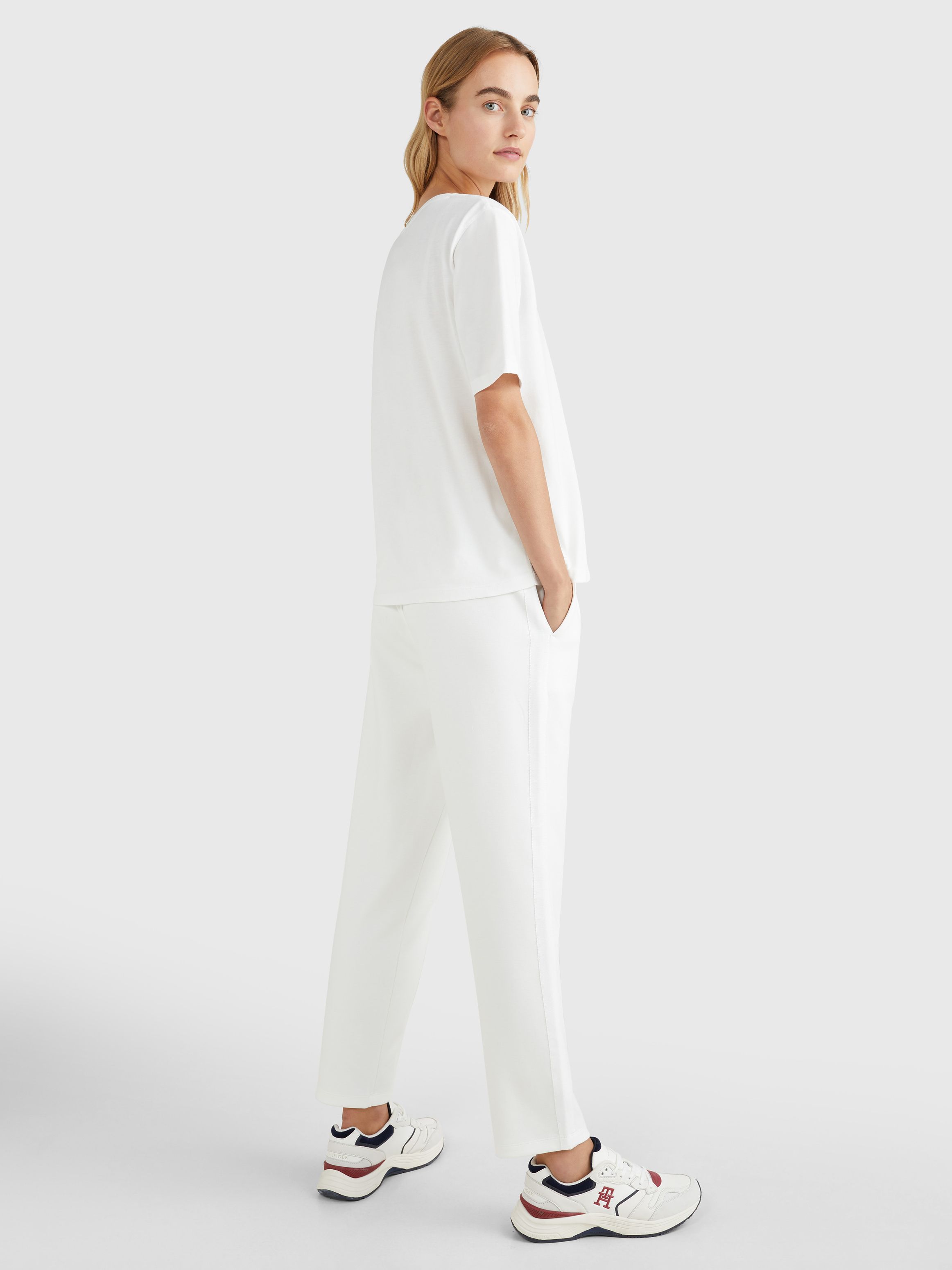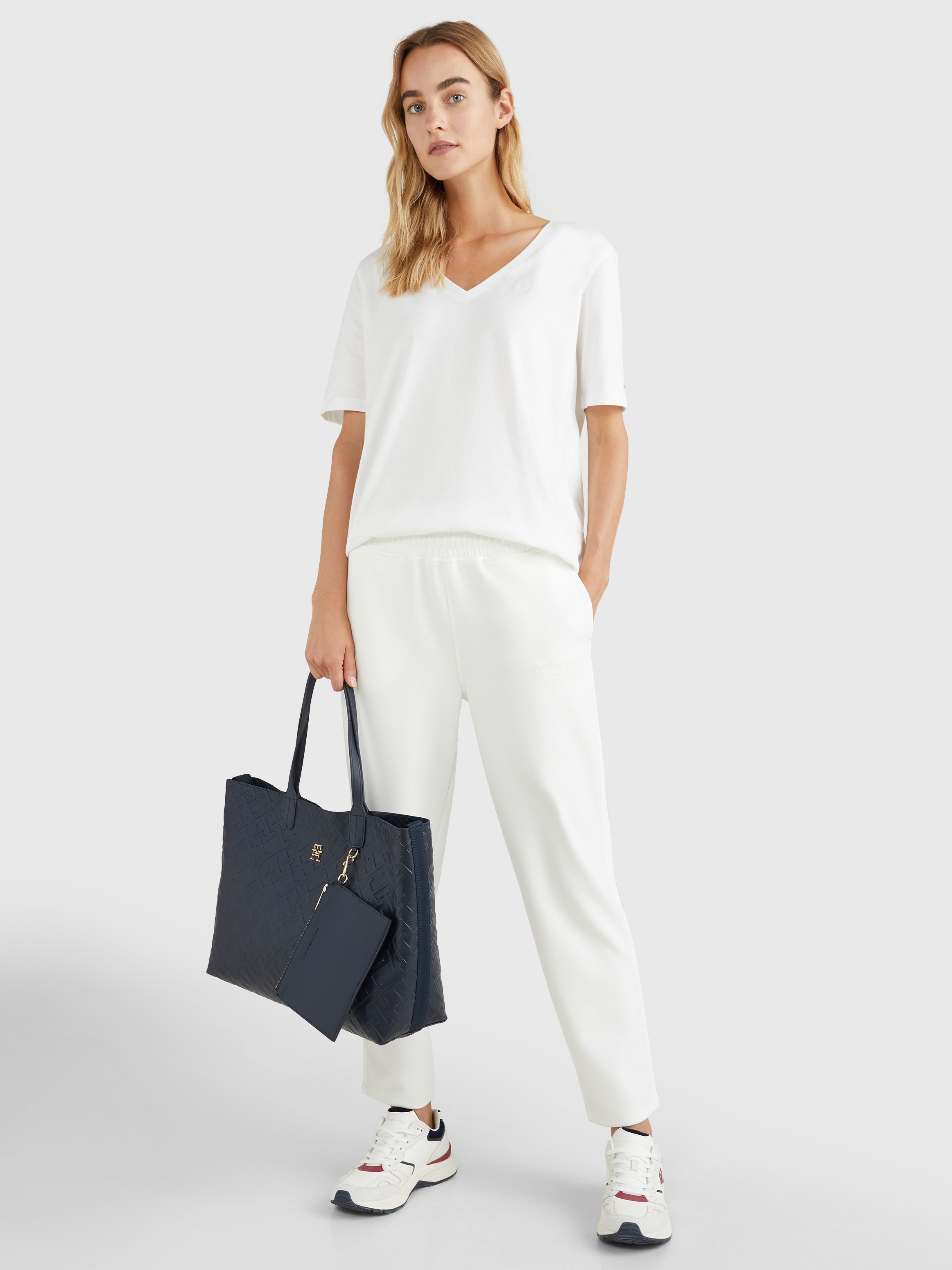 • تيشيرت بقصة مريحة وياقة على شكل V
